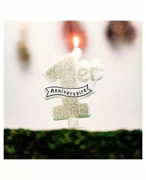 For en strålende 1-årsdag! Dette settet inneholder 1 bursdagslys med bobeche. Det måler omtrent 10 x 8 cm. Det har en glitrende champagnefarge og former ordene «1st birthday». Det vil være perfekt for barnet ditt å blåse ut sitt første lys!. Inkludert tilbehør: 1 lys