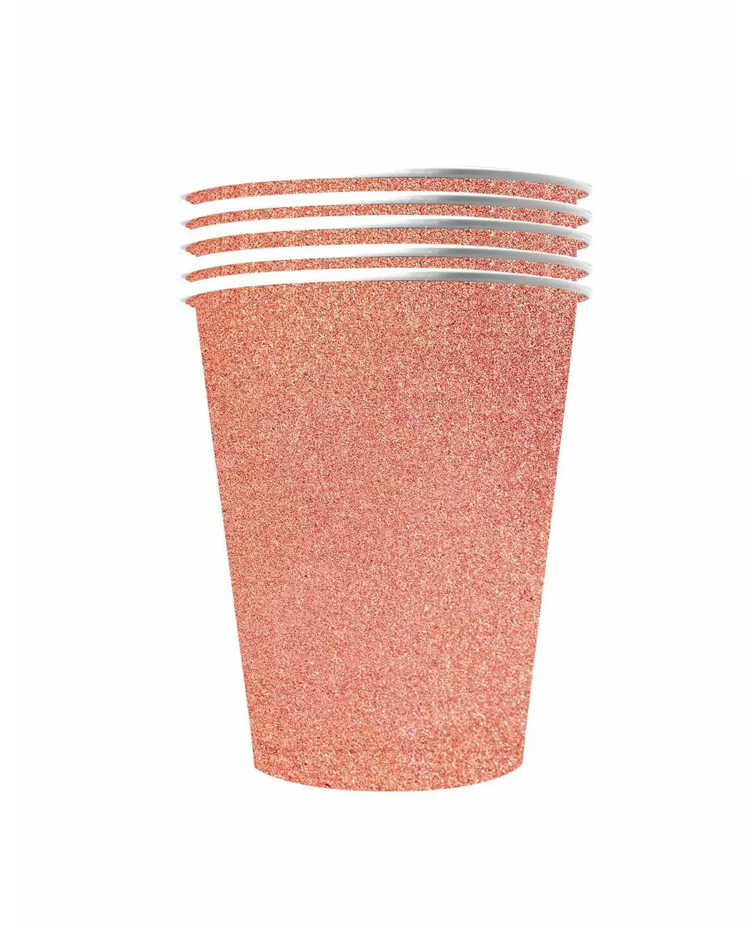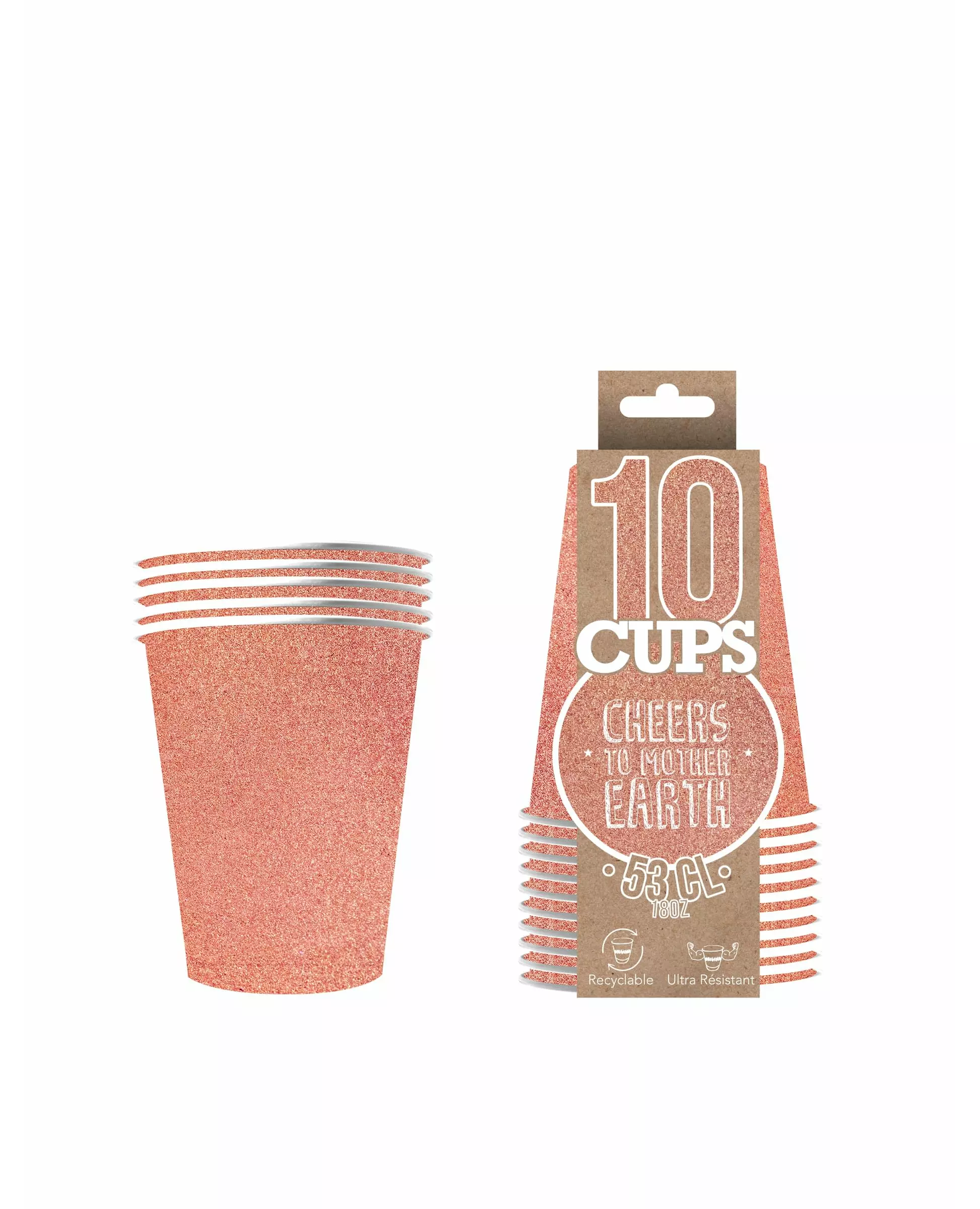 Sett roségull i søkelyset på bordet ditt! Dette settet består av 10 pappkopper. De er roségullfarget med en glitrende effekt. De er store og rommer omtrent 53 cl drikke. Disse koppene er laget av resirkulerbar og ultra-slitesterk papp. De vil være perfekte for servering av drinker på en babyshower eller et utdrikningslag. Inkludert tilbehør: 10 kopper Materiale: Papp