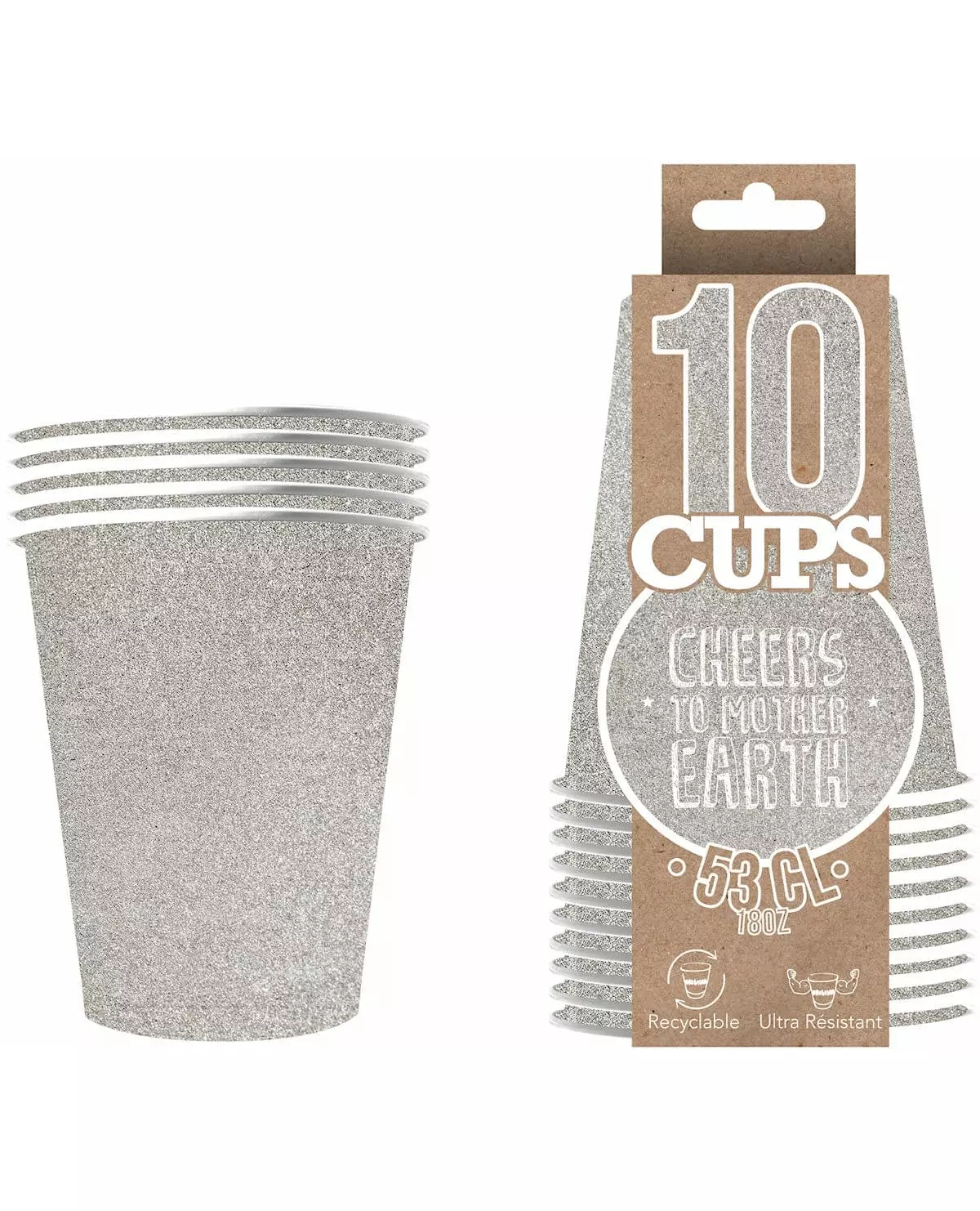 10 amerikanske glitrende, resirkulerbare sølvfargede pappkopper, 53 cl