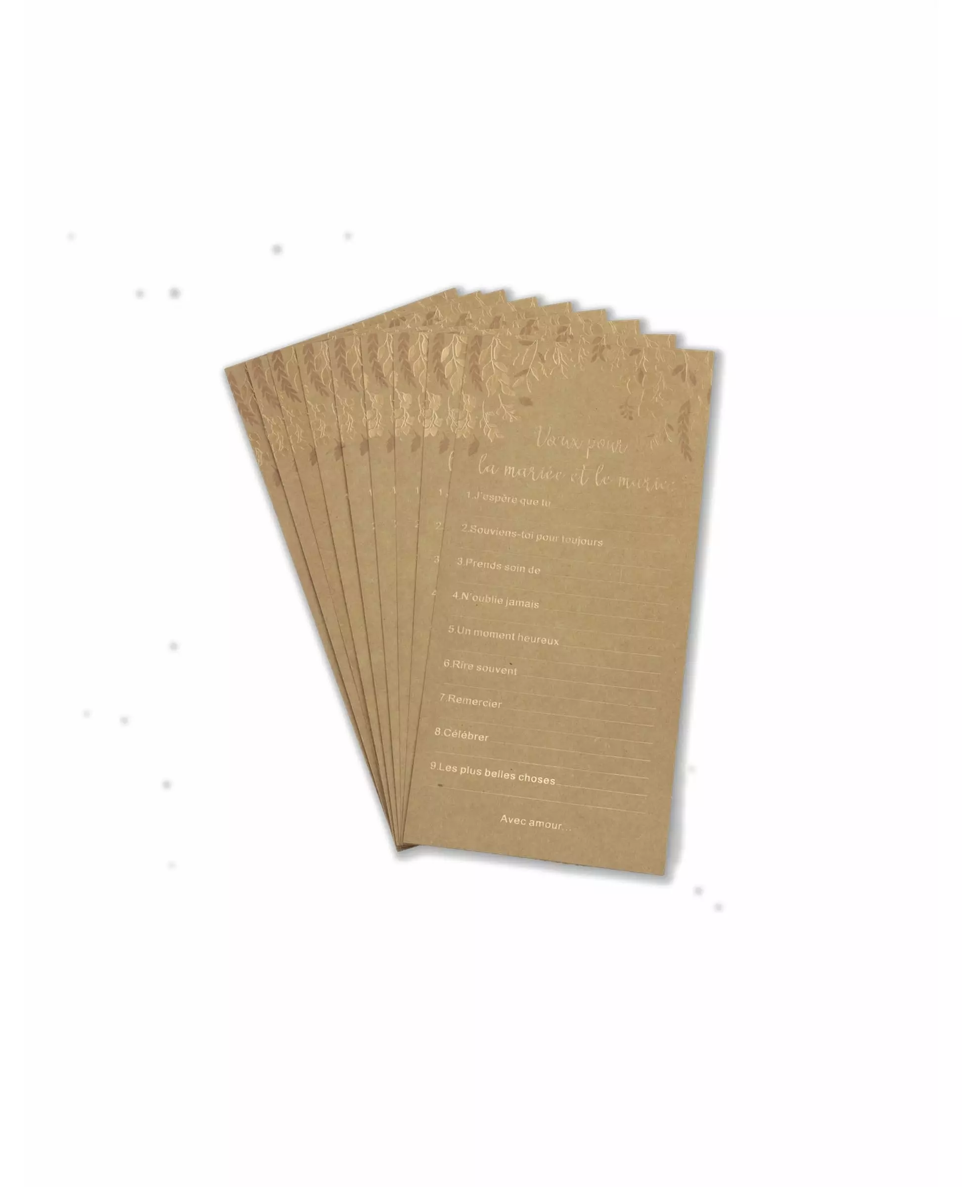 10 bryllupskort i kraft og bronse, 22 x 11 cm
