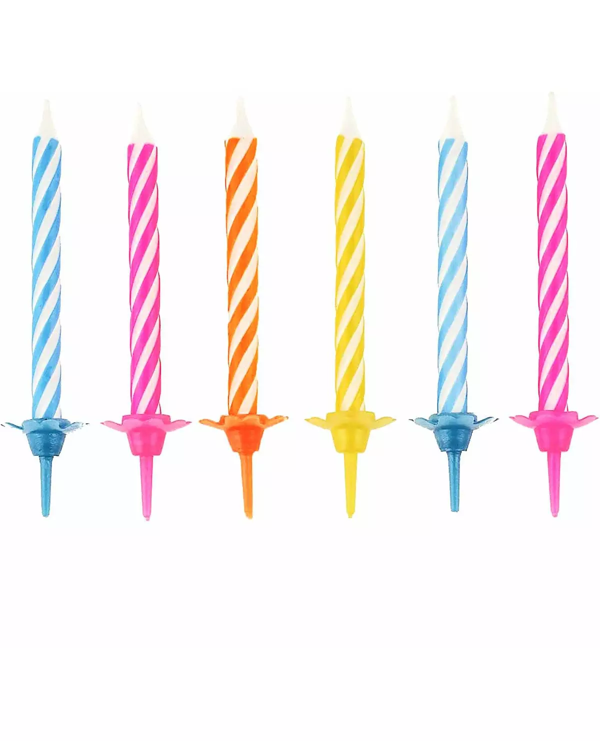 10 fargede bursdagslys med 6 cm lysholdere