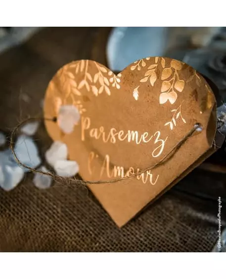10 hjerteposer med strø kjærlighet i kraftpapir og bronse 12 x 13 cm
