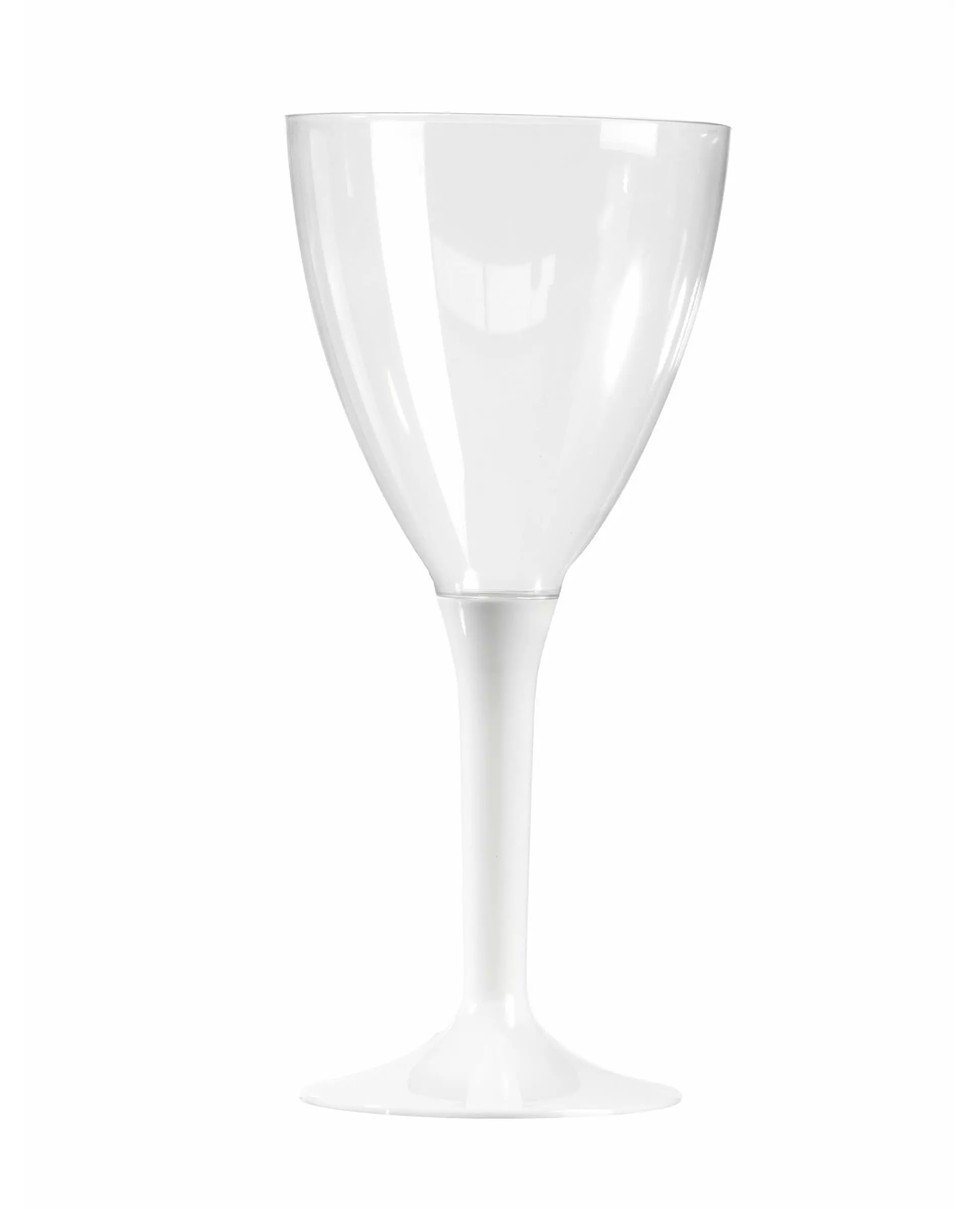 Perfekt for raffinerte kvelder! Dette settet består av 10 plastglass med stilk. De er gjennomsiktige med en ugjennomsiktig hvit stilk og måler omtrent 15 cm i høyden. Disse glassene vil være perfekte for å servere aperitiffen din til gjestene dine under et elegant cocktailselskap. Inkludert tilbehør: 10 glass Materiale: Plast