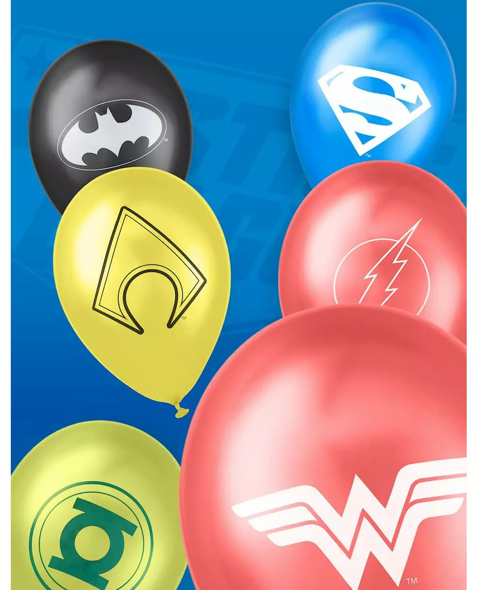 Hver sin ballong! Dette settet er offisielt lisensiert av Justice League™ og består av 10 lateksballonger som måler 25 x 32 cm. Det består av 2 røde ballonger med bilde av Wonder Woman, 2 svarte ballonger til Batman, 2 gule ballonger som representerer Aquaman, 2 metallisk blå ballonger til Superman, 1 rød ballong med bilde av The Flash og til slutt 1 grønn ballong med referanse til Green Lantern. Du kan blåse dem opp med luft eller helium ved hjelp av et sugerør. Disse ballongene vil være et morsomt og fargerikt dekorativt element til ditt Justice League™-temaarrangement! Inkludert tilbehør: 10 ballonger Materiale: Lateks Vedlikehold: Ikke vask