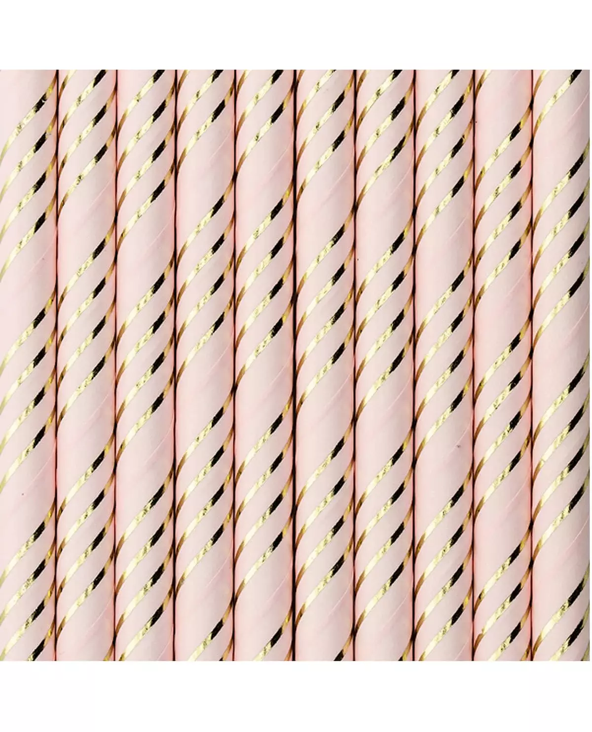 10 rosa pappsugerør med metalliske gullstriper 19,5 cm