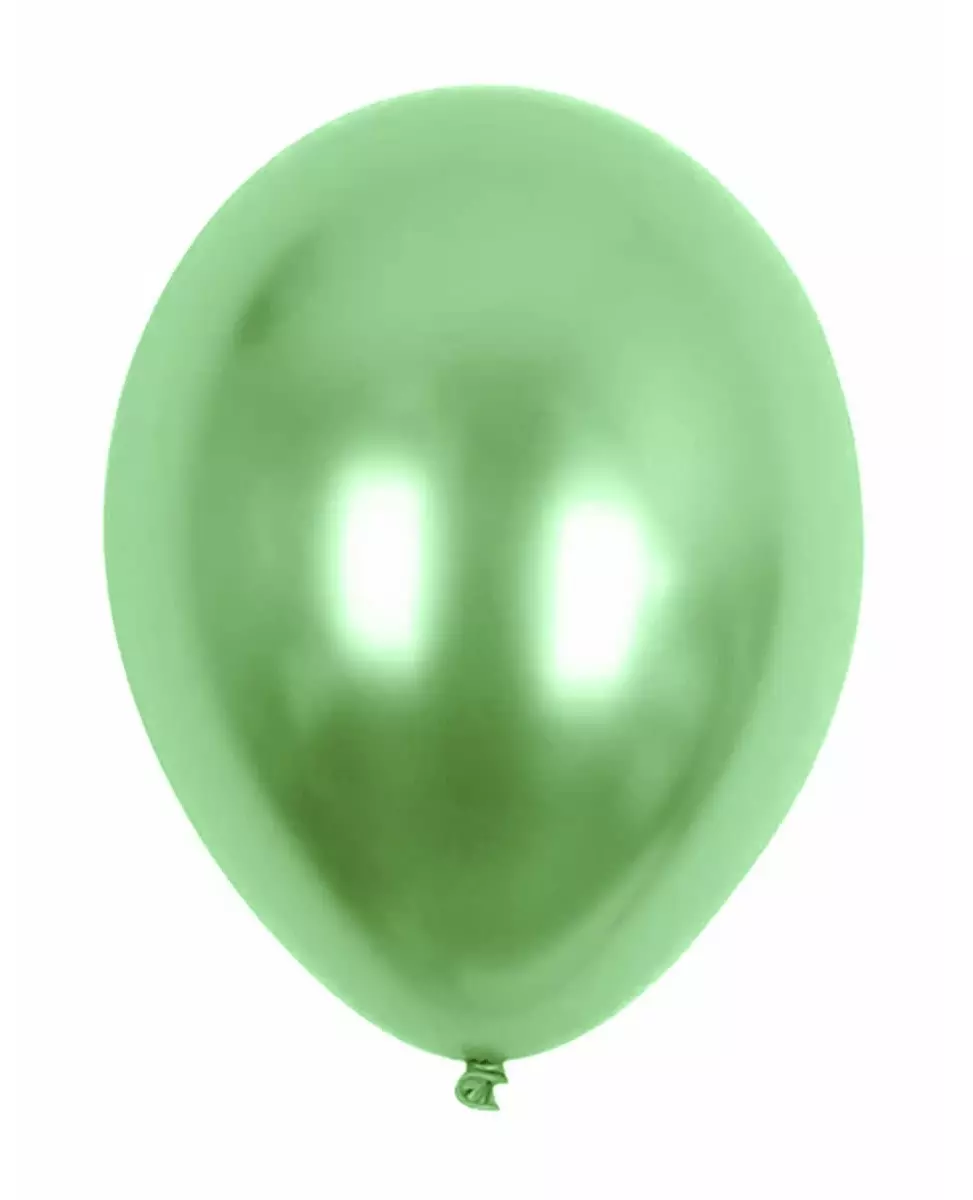 100 ballonger Denne pakken inneholder 100 grønne ballonger. Disse metalliske ballongene måler omtrent 29 cm og er laget av naturgummi. De er også fullstendig biologisk nedbrytbare. Disse grønne ballongene vil være perfekte for å sette farge på romdekorasjonen din til en bursdagsfest eller en kveld med venner. Inkludert tilbehør: 100 ballonger