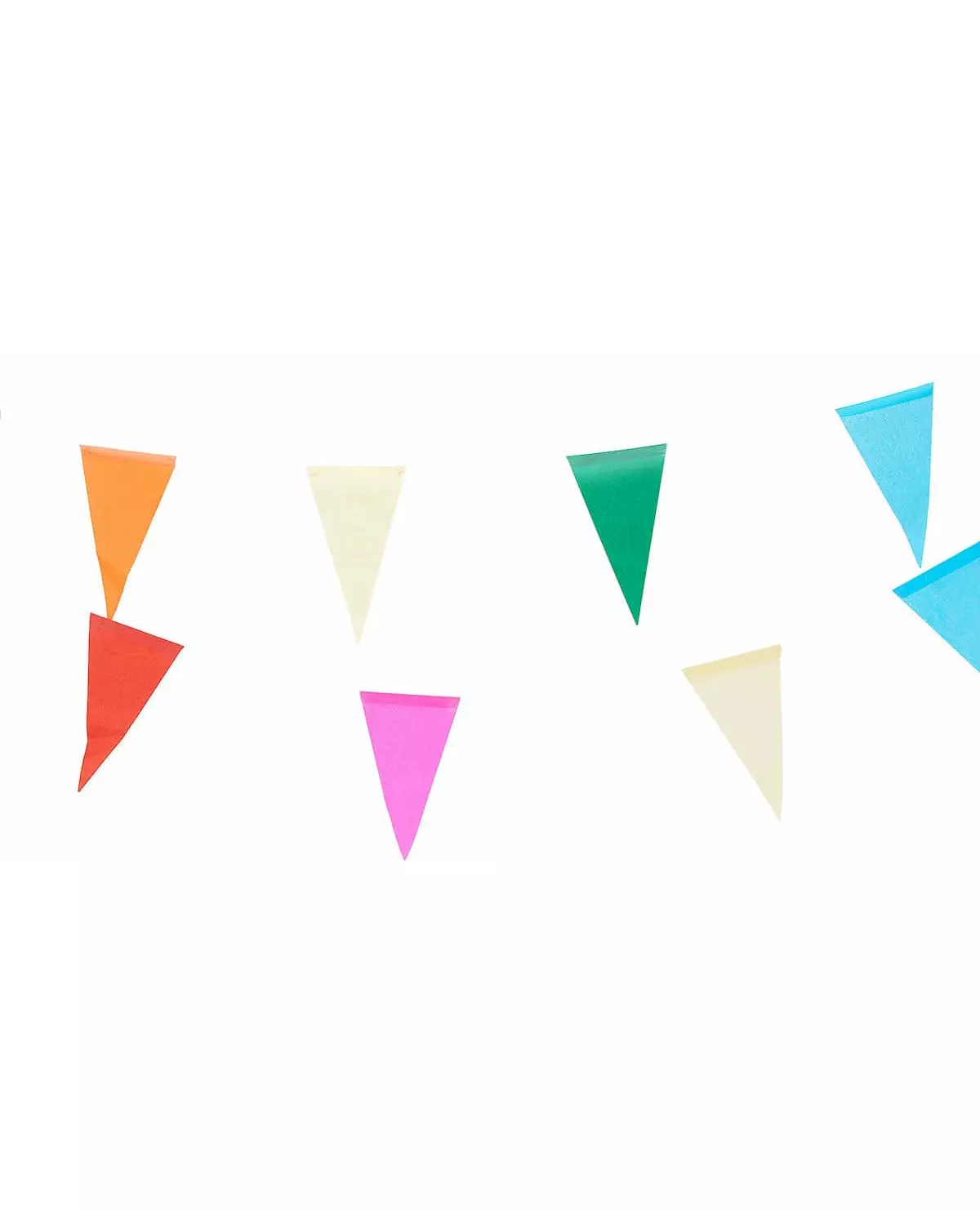 Ti meter med farger! Flerfarget papirgirlander, lengde: 10 meter. Høyde på vimplene: 24 cm. Ideelt tilbehør for å dekorere hjemmet ditt til enhver festlig begivenhet. Inkludert tilbehør: 1 girlander Materiale: Papir