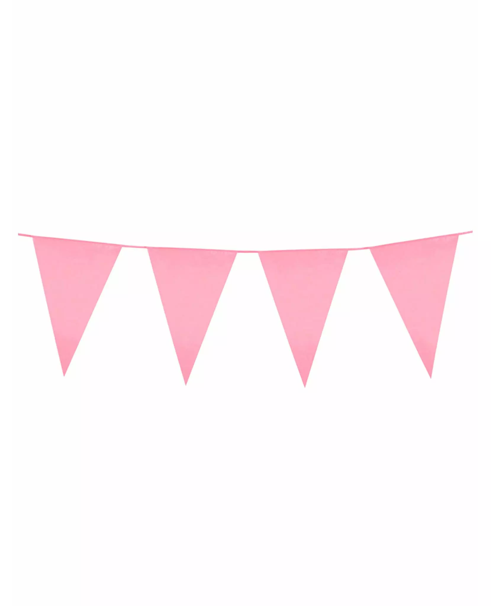For en fin jentete dekorasjon! Denne plastgirlanderen med rosa vimpler måler omtrent 10 meter i lengden. Den består av 20 lilla vimpler, som hver måler 20 x 30 cm. Vimplene er trykt på begge sider. Den vil være perfekt for å enkelt fullføre dekorasjonen din under en fest i rosa toner. Inkludert tilbehør: Girlander Materiale: Plast