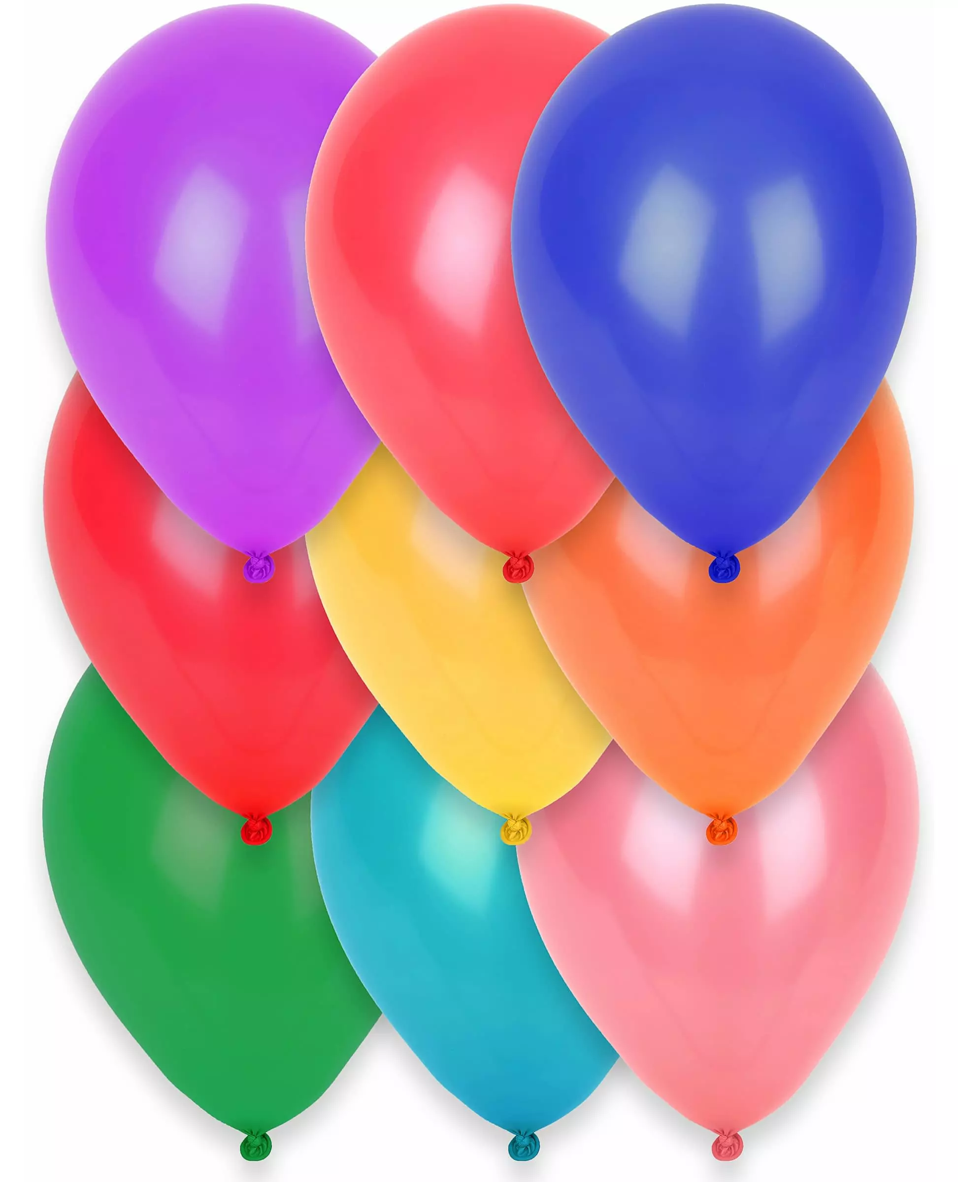 Flerfargede ballonger for en fargerik fest! 12 ballonger i forskjellige farger, 28 cm. Disse ballongene er laget av naturgummi og fullstendig biologisk nedbrytbare. Inkludert tilbehør: 12 ballonger