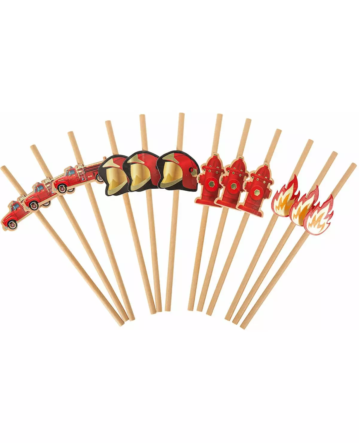 12 sugerør i kraftpapir og røde brannmenn, 19,5 cm