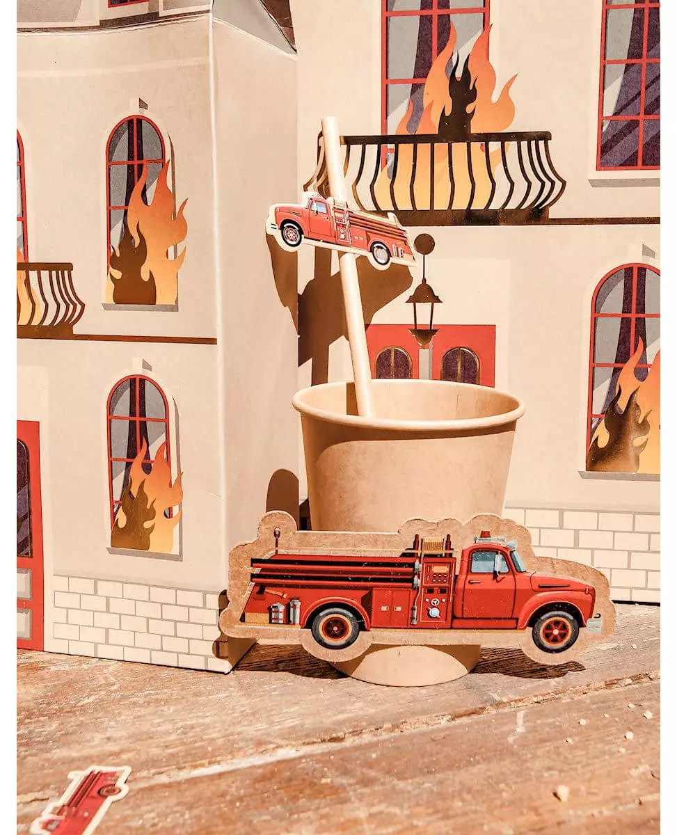 Nipp til drinkene dine mellom to bål! Dette settet består av 12 sugerør i kraftpapir for brannmenn. De er omtrent 19,5 cm høye og dekorert med brannbiler, hjelmer, brannhydranter og flammer. Disse sugerørene vil være et perfekt supplement til en bursdagsbuffet med branntema! Inkludert tilbehør: 12 sugerør Materiale: Kraft