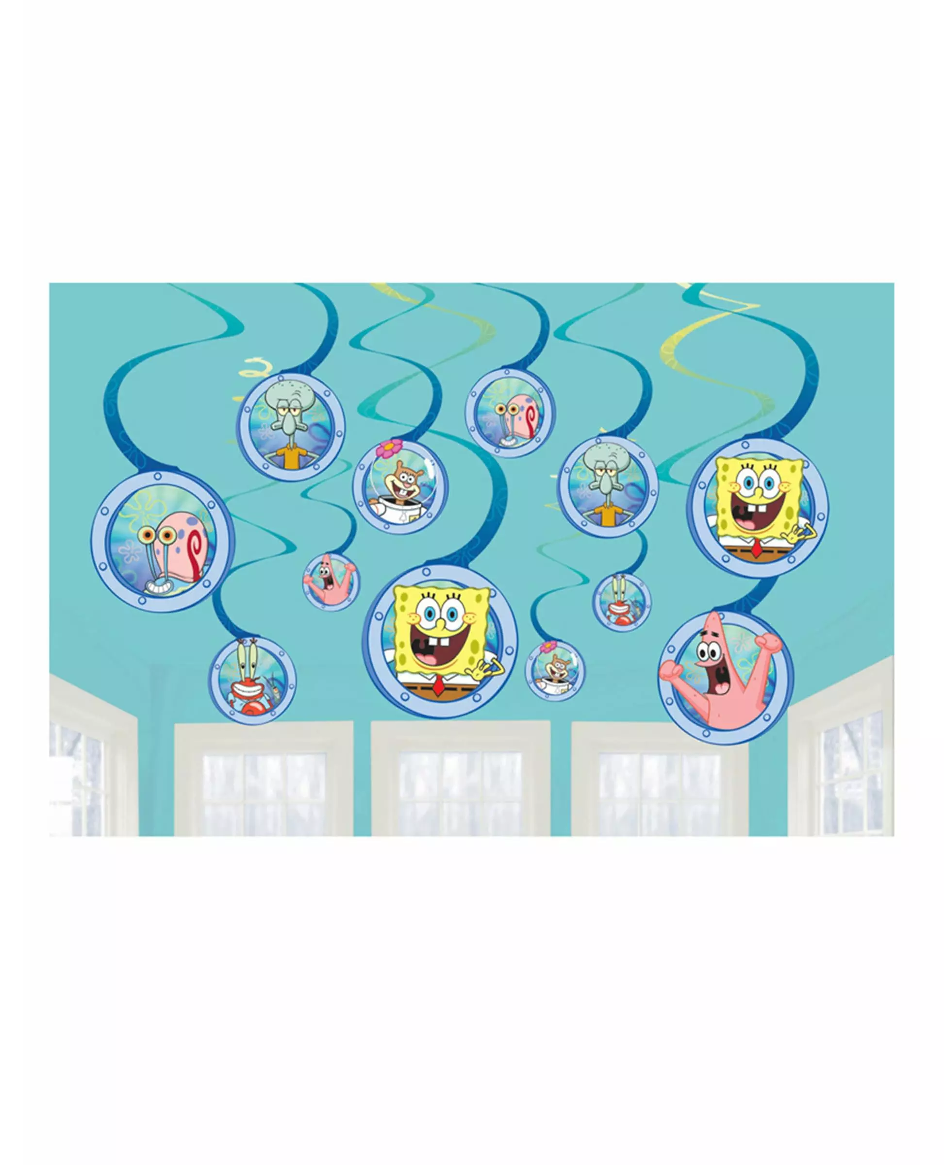 SpongeBob SquarePants™ Hengende dekorasjoner! Dette settet inneholder 12 hengende dekorasjoner. De representerer de forskjellige figurene fra den berømte tegnefilmen SpongeBob SquarePants: Patrick sjøstjernen, Blekkvart-tentakkelen, Herr Krabbe, Gary, Sandy ekornet og selvfølgelig SpongeBob SquarePants. De er runde og blå i fargen. Disse hengende dekorasjonene vil være perfekte for å dekorere rommet ditt med et SpongeBob SquarePants-tema til barnets bursdag! Materiale: nei. Inkludert tilbehør: 12 hengende dekorasjoner