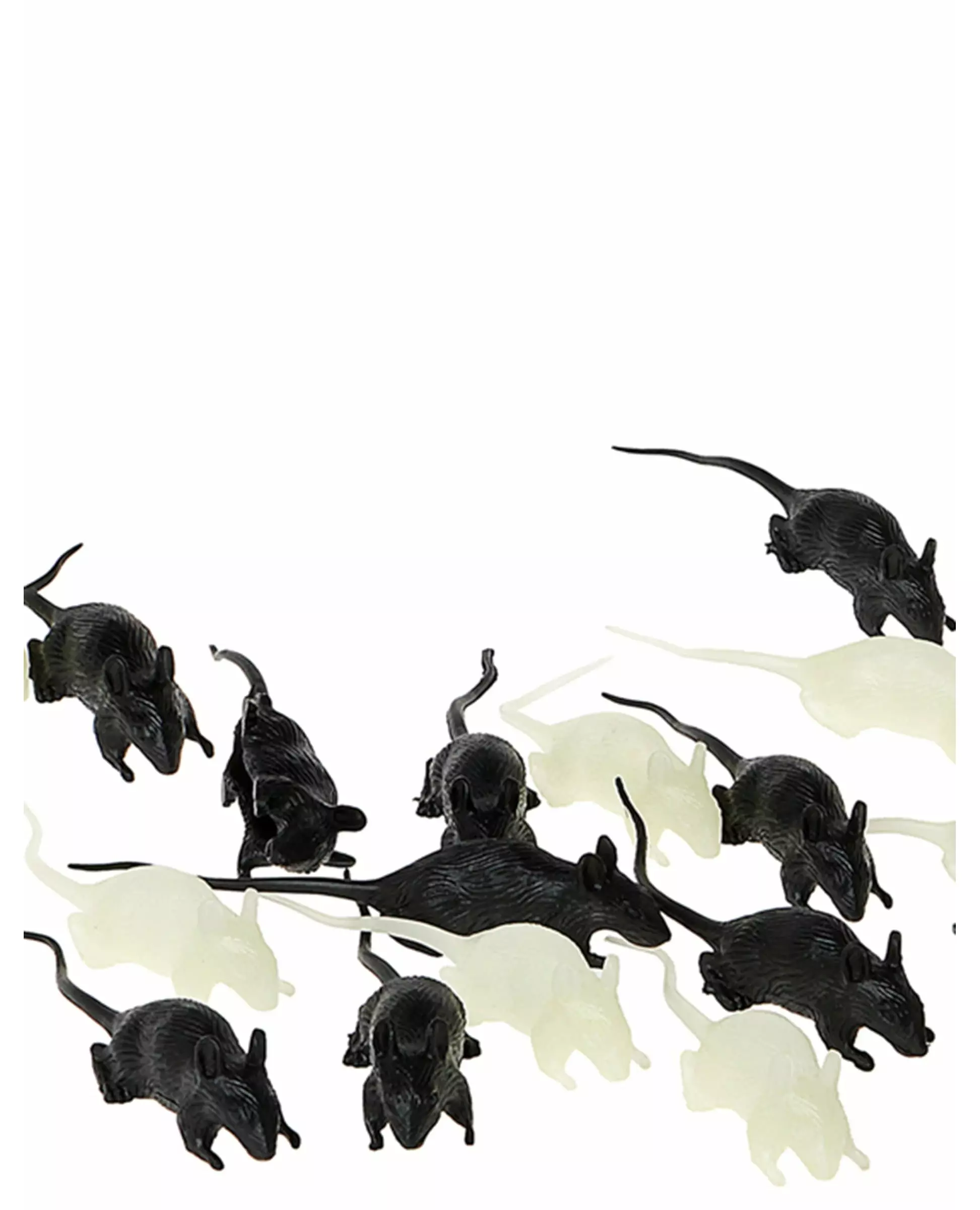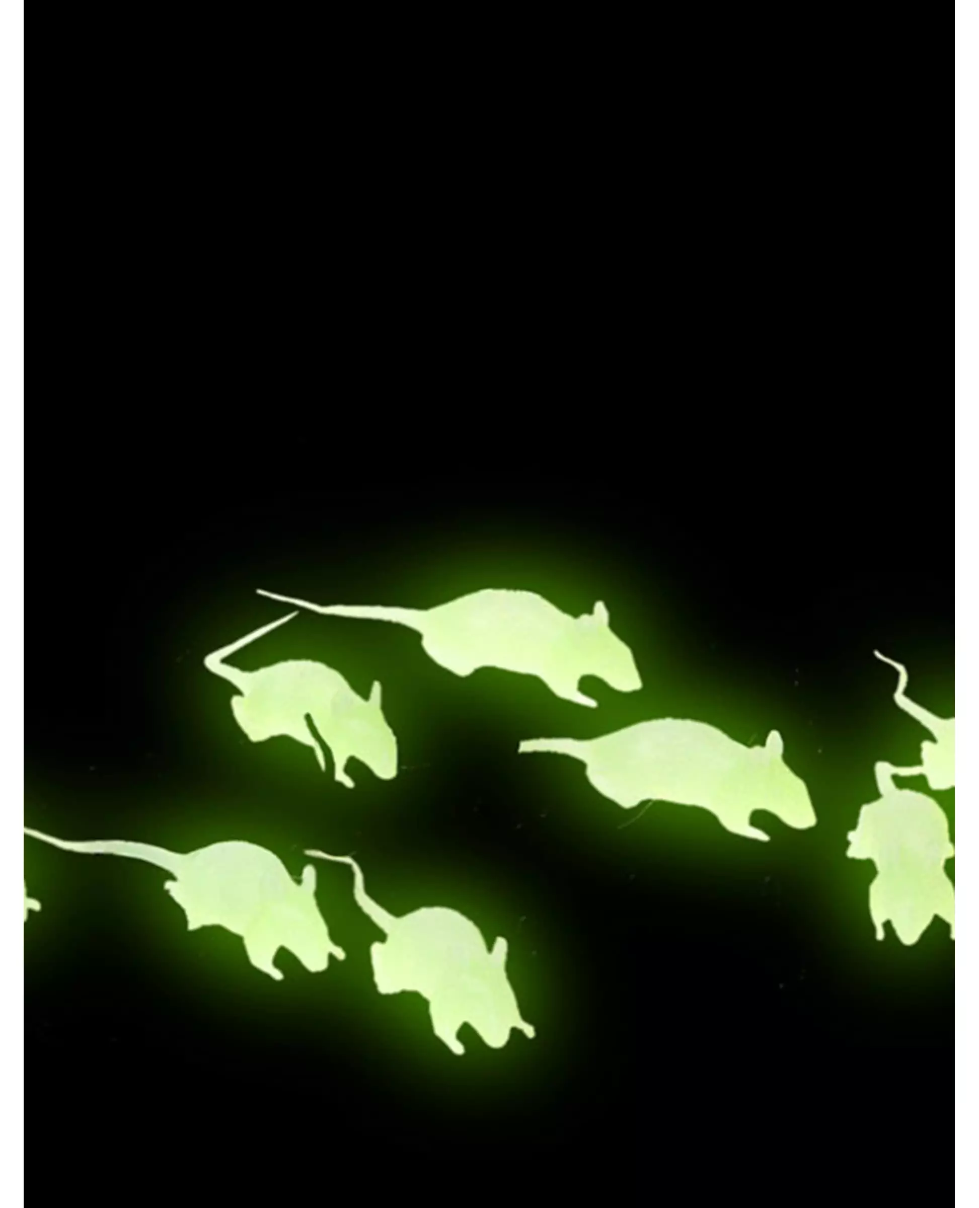 Det er ekkelt! Dette settet inneholder 12 rotter. 6 rotter er svarte og 6 er fosforescerende. Hver måler omtrent 4 x 2 cm. De er laget av plast med lang hale og lyser i mørket. Disse rottene, som kan plasseres på gulvet eller på et bord, er perfekte for å skremme vennene dine til en Halloween-fest!. Inkludert tilbehør: 12 fosforescerende rotter Materiale: Plast