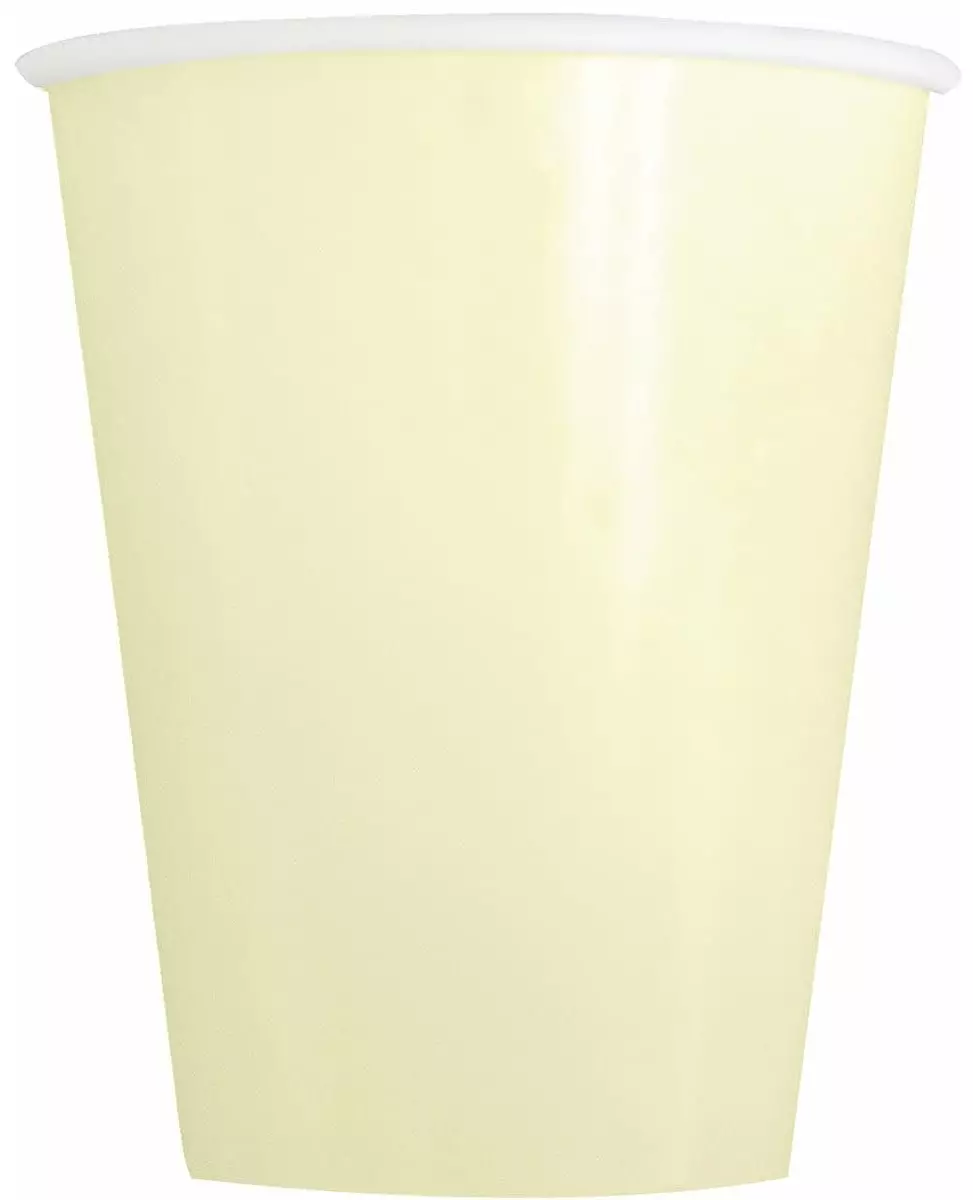 Dekk et elegant og elegant bord! Disse elfenbensfargede koppene selges i pakker på 14. De har en kapasitet på omtrent 266 ml og er laget av papp. De vil være perfekte for alle anledninger: bursdager, dåp, bryllup osv. Inkludert tilbehør: 14 kopper Materiale: Papp