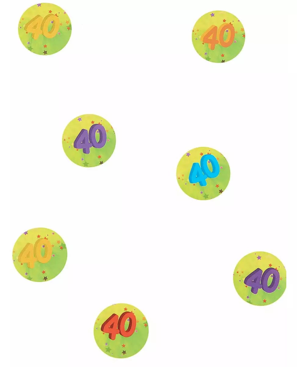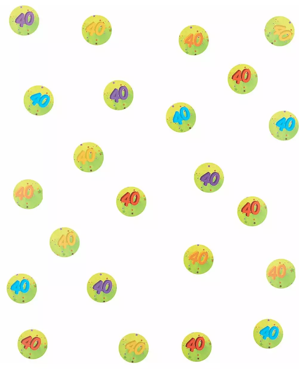 Pynt bursdagsbordet ditt! Denne posen inneholder 150 konfetti til 40-årsdagen. De er laget av kartong og måler omtrent 2,5 cm i diameter. De er grønne og gule med små fargede stjerner og tallet 40 trykt på dem. Denne bordkonfettien lar deg fullføre bursdagsdekorasjonen din og gi et fargerikt preg på 40-årsdagen din. Laget i Frankrike. Inkludert tilbehør: 150 konfetti