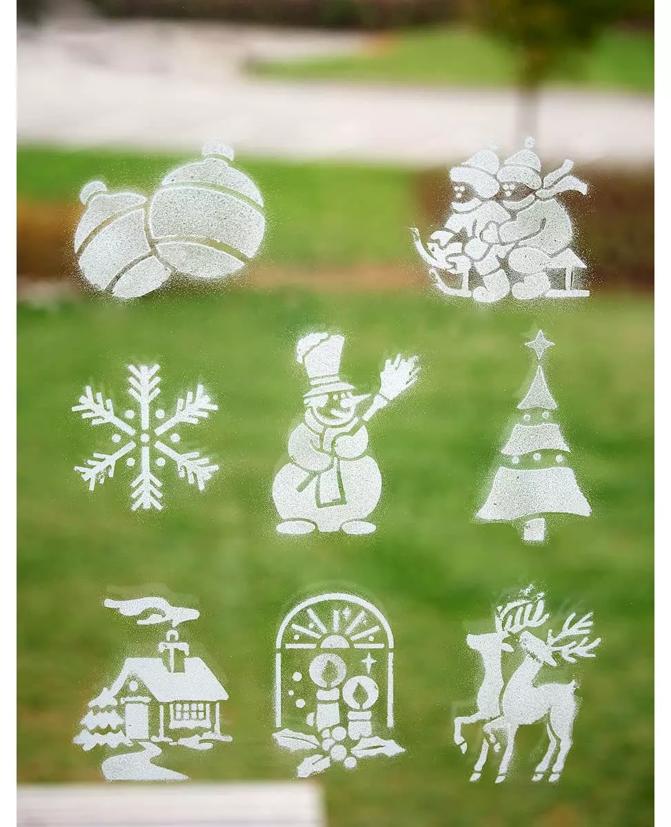 Pynt vinduene dine til jul! Denne snøsprayboksen leveres med 8 juletema-sjabloner. Den har en kapasitet på 150 ml. Sprayen måler omtrent 17 x 4,5 cm. Det spesielle med denne juledekorasjonen er at snøen gløder etter å ha blitt utsatt for sterkt lys. Sjablonene er laget av papir. De representerer julemotiver som snøflak, reinsdyr, lys, et grantre osv. De måler omtrent 20 x 15 cm, avhengig av modellen. Dette settet vil være perfekt for å gi hjemmet ditt et snev av lys. Vindusdekorasjonene dine til slutten av året. Tilbehør inkludert: 1 kunstig snøspray 8 sjablonger