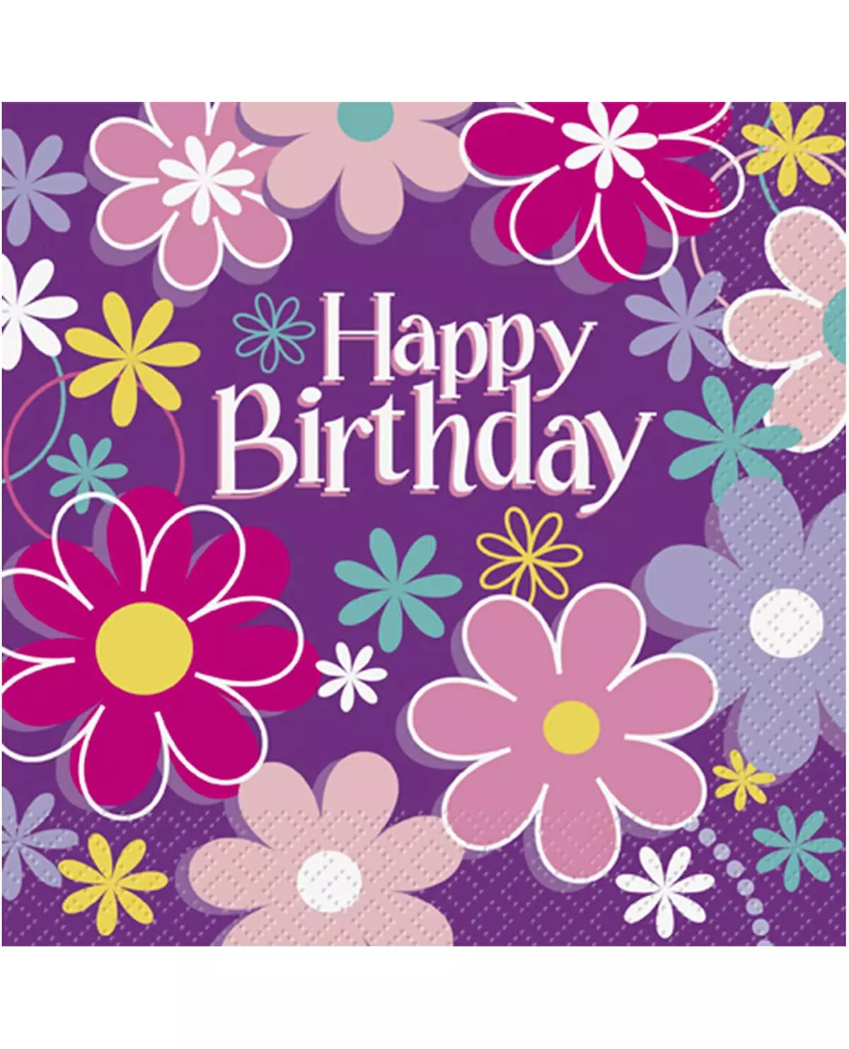 16 papirservietter med bursdagsblomster, 33 x 33 cm