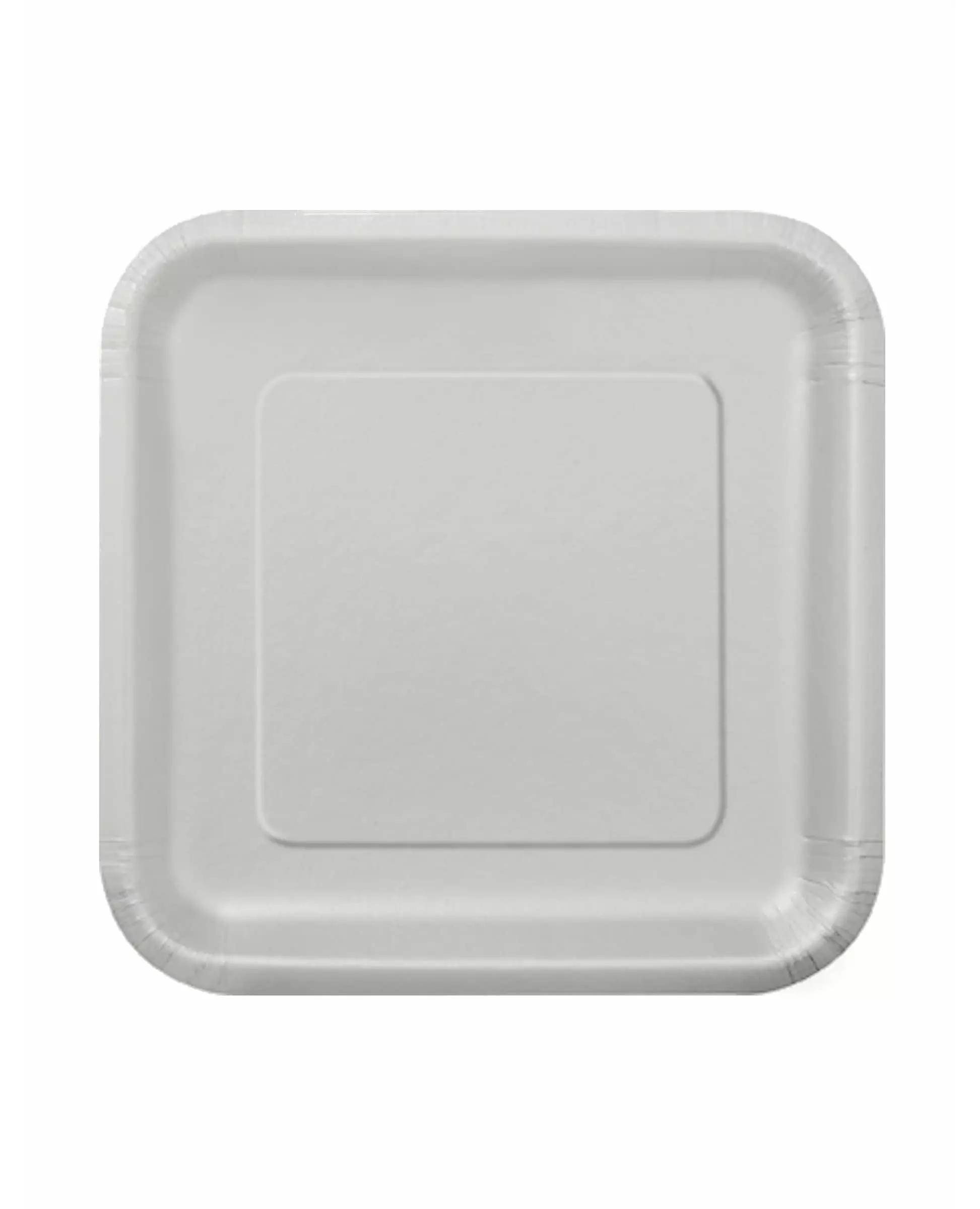 Firkantede tallerkener Denne pakken inneholder 16 sølvfargede, firkantede papptallerkener med en diameter på 18 cm. Perfekt for å lyse opp mottakelsesbordet på julefestene. Unik festlogo Tilgjengelig én størrelse 53656,