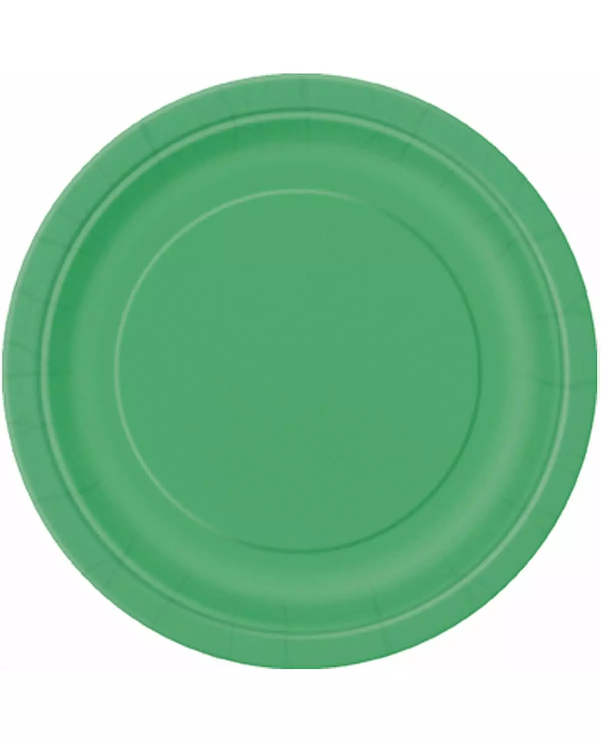 Sett litt farge på bordet ditt! Dette settet inneholder 16 store runde smaragdgrønne papptallerkener. De måler 22 cm i diameter. Disse tallerkenene vil være perfekte for å fullføre borddekorasjonen din. Unik festlogo. Inkludert tilbehør: 16 tallerkener Materiale: Papp