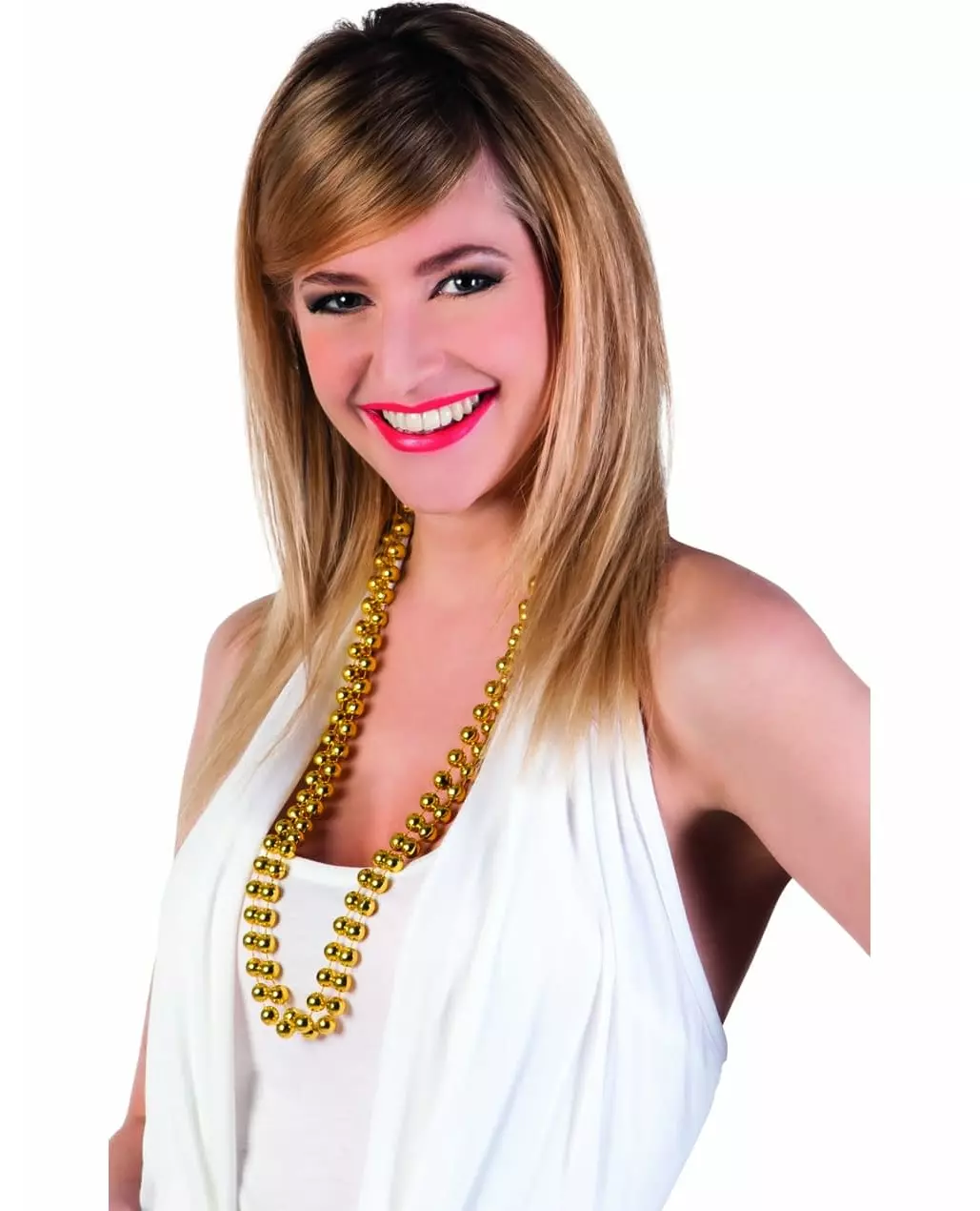 Gull! Dette settet med to gullperlekjeder er for voksne. Disse halskjedene vil være det essensielle tilbehøret for å fullføre kostymet ditt under et karneval eller kostymefester med venner. Inkludert tilbehør: 2 halskjeder Materiale: Plast Plast