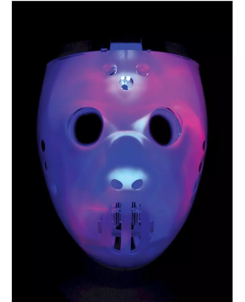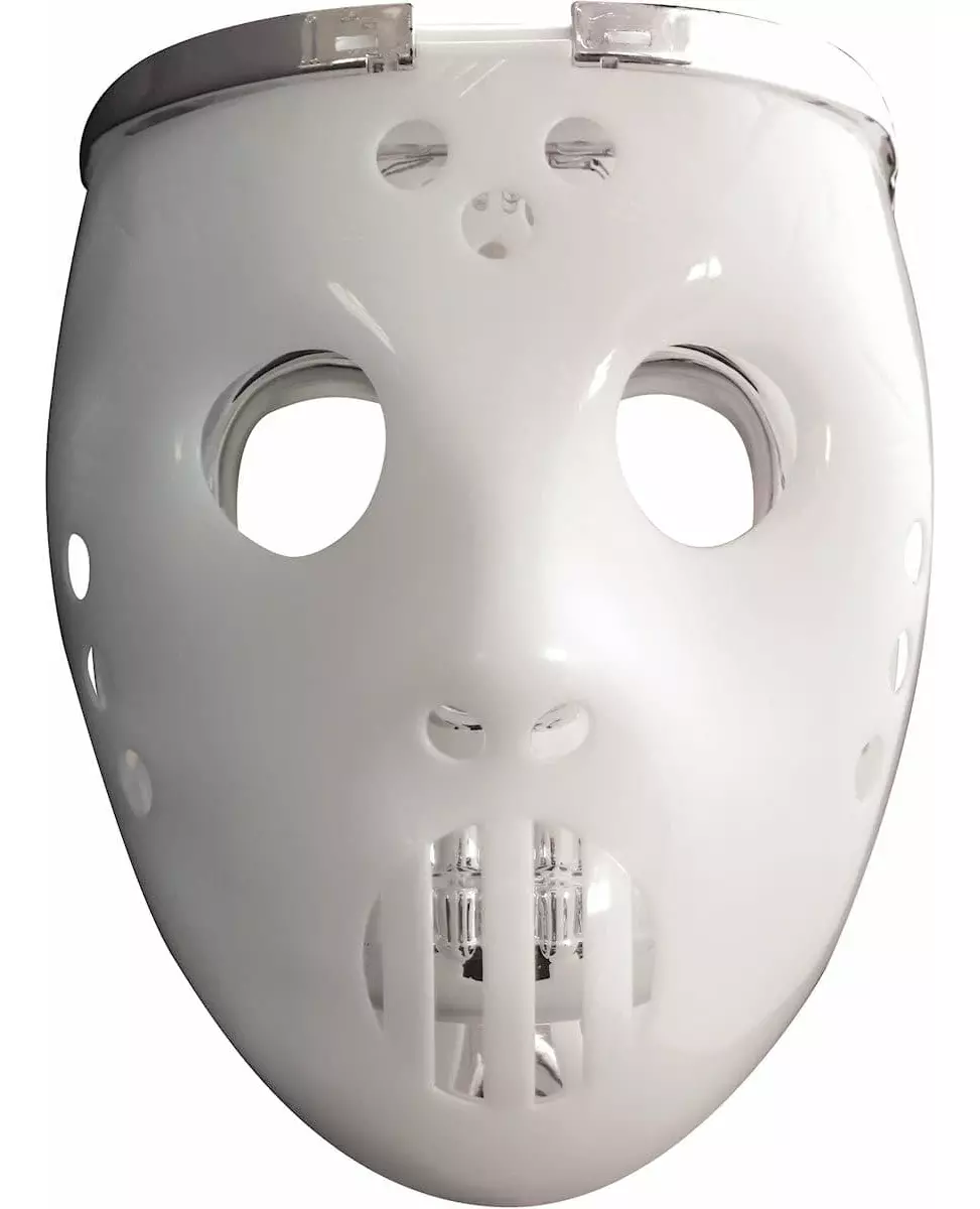Hva finner du under masken? Denne hockeymasken er lys og hvit (2 CR2016-batterier er inkludert). Den holdes på plass av en strikk. Hullene i øynene, nesen og munnen lar deg puste lett. I tillegg minner formen på masken og rutenettet som skjuler munnen om masken til en berømt morder. I tillegg til å være lys, har denne masken den spesielle egenskapen at den skjuler en andre maske! Du kan faktisk løfte hockeymasken, og under den dukker det opp en hodeskalle! Dette tilbehøret vil være perfekt for å fullføre seriemorderforkledningen din og for å gi vennene dine livets skrekk, til Halloween eller en kostymefest med skrekktema. Inkludert tilbehør: Maske Materiale: Plast