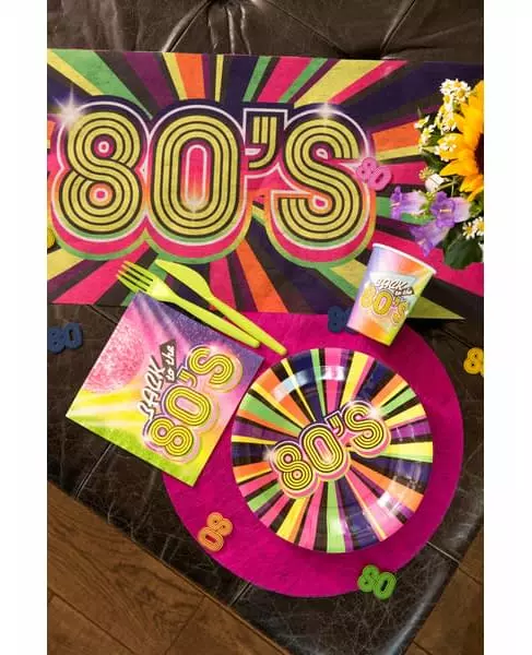 80-tallet er tilbake! Disse 20 papirserviettene måler 33 x 33 cm når de er utbrettet. De har en grønn, gul, rosa og lilla bakgrunn med en imitert glittereffekt. De er dekorert med en vakker rosa diskokule og har inskripsjonen «Back to the 80s», som betyr 80-tallets tilbakekomst. Reis tilbake i tid med disse serviettene på en 80-tallsfest eller til en bursdag! Inkludert tilbehør: 20 servietter Materiale: Papir
