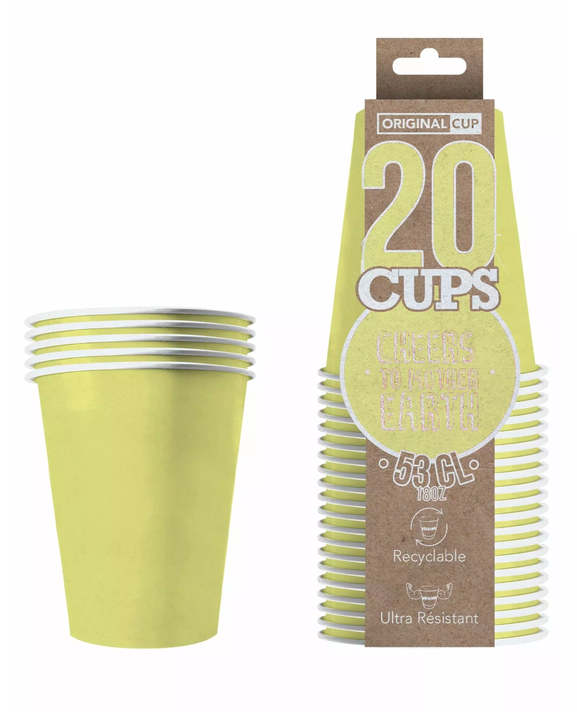 20 amerikanske resirkulerbare pappkopper pastellgule 53 cl