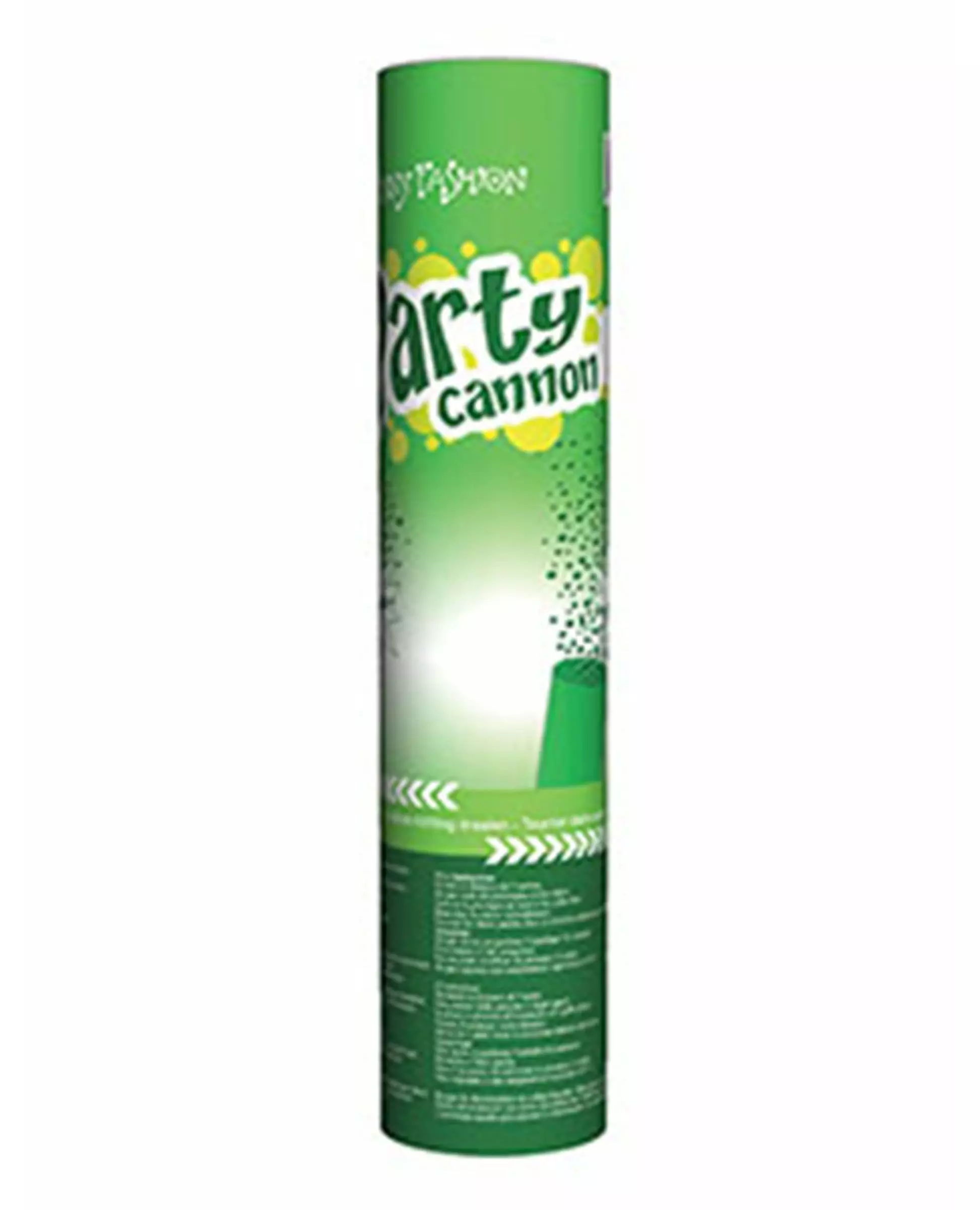 Vår på festen din! Denne grønne konfettikanonen måler 20 cm. Ved å rotere bunnen av røret og bruke en trykkluftpatron kan du se rektangulær konfetti laget av fint papir fly opptil 5 meter. Vi inviterer deg til å lese forholdsreglene for bruk på emballasjen. For eksempel til St. Patricks dag, eller til andre fargerike temaarrangementer, vil denne kanonen være ideell for festing!. Inkludert tilbehør: Kanon