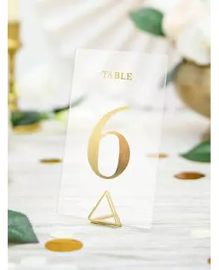 20 gjennomsiktige bordtuscher med gulltall 7 x 12 cm