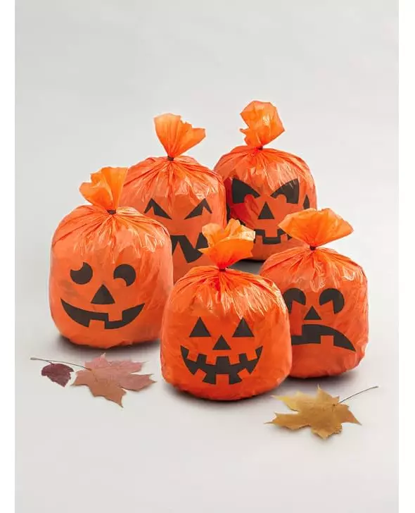 Gresskarene invaderer hagen! Denne pakken består av 20 oransje poser. Hver av dem har et gresskaransikt trykt. Alle har forskjellige uttrykk. Hver pose måler 15 x 20 cm. Bare fyll dem med for eksempel døde blader eller papir, og knyt de medfølgende svarte båndene. Heng disse gresskarene i trærne i hagen din eller på busker, gjerder eller en veranda for en flott effekt på Halloween. Unik festlogo. Inkludert tilbehør: Gresskarposer Materiale: Plast