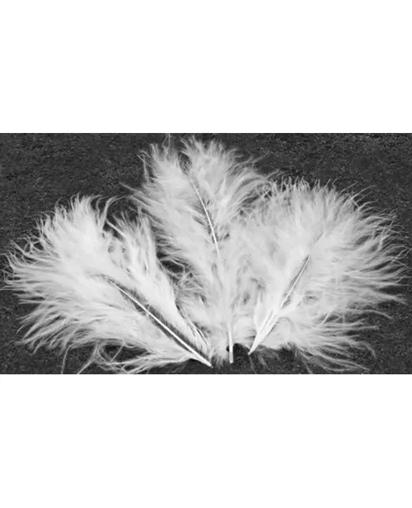 20 hvite dekorative fjær 5,5 cm. Fjær for en lys hvit dekorasjon. Dette settet består av 20 hvite fjær à 5 stk.