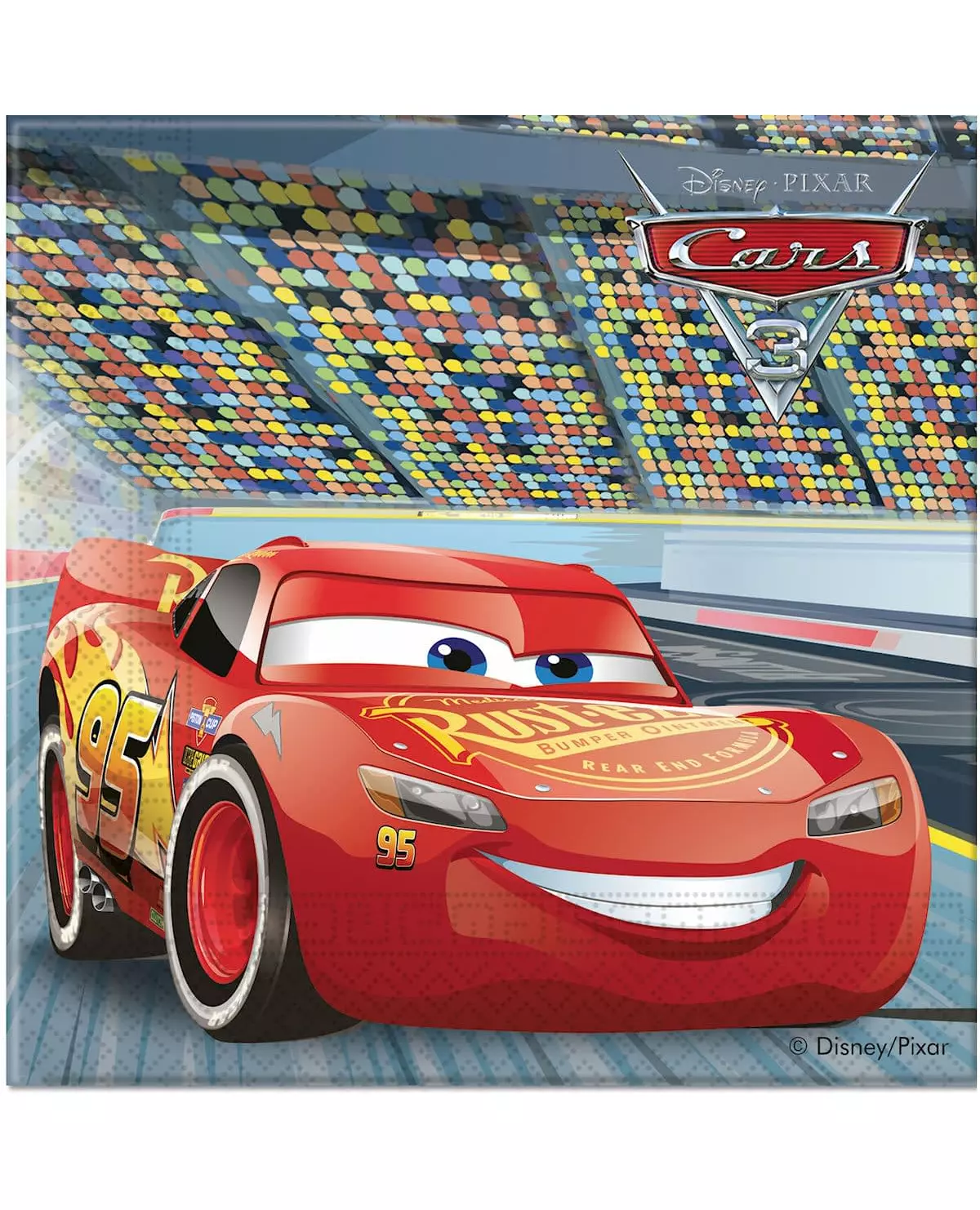 Kjør kapp med Lynet McQueen! Denne pakken inneholder 20 offisielt lisensierte Biler 3™ papirservietter. De måler omtrent 16,5 x 16,5 cm brettet og 33 x 33 cm utbrettet. Den berømte Lynet McQueen™ er trykt på den ene siden på en racerbane, mens du på den andre siden finner Cruz Ramirez, Lynets nye venn. Disse serviettene vil være perfekte for å fullføre Biler™-temabordet ditt til barnets bursdag! Inkludert tilbehør: 20 servietter Materiale: Papir