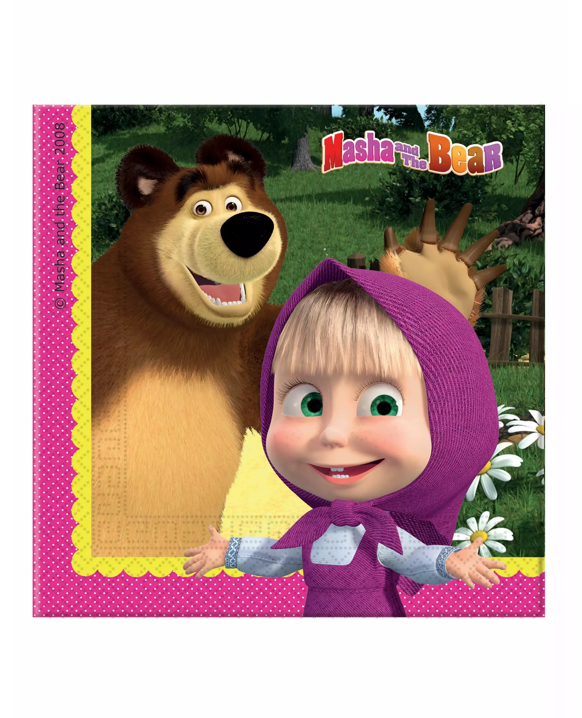 Masha og Mishka™ er invitert til festen! Dette settet med 20 papirservietter er offisielt lisensiert av Masha og Bjørnen™. Disse firkantede serviettene, som måler 33 x 33 cm utbrettet, er trykt med den berømte lille Masha og hennes uatskillelige bjørn, Michka, smilende og veldig imøtekommende i sin verden, midt i naturen! Med disse papirserviettene inviterer de to vennene Masha og Michka™ seg til bordet ditt for å tilbringe et uforglemmelig øyeblikk med barnet ditt på bursdagen deres!. Inkludert tilbehør: 20 servietter Materiale: Papir