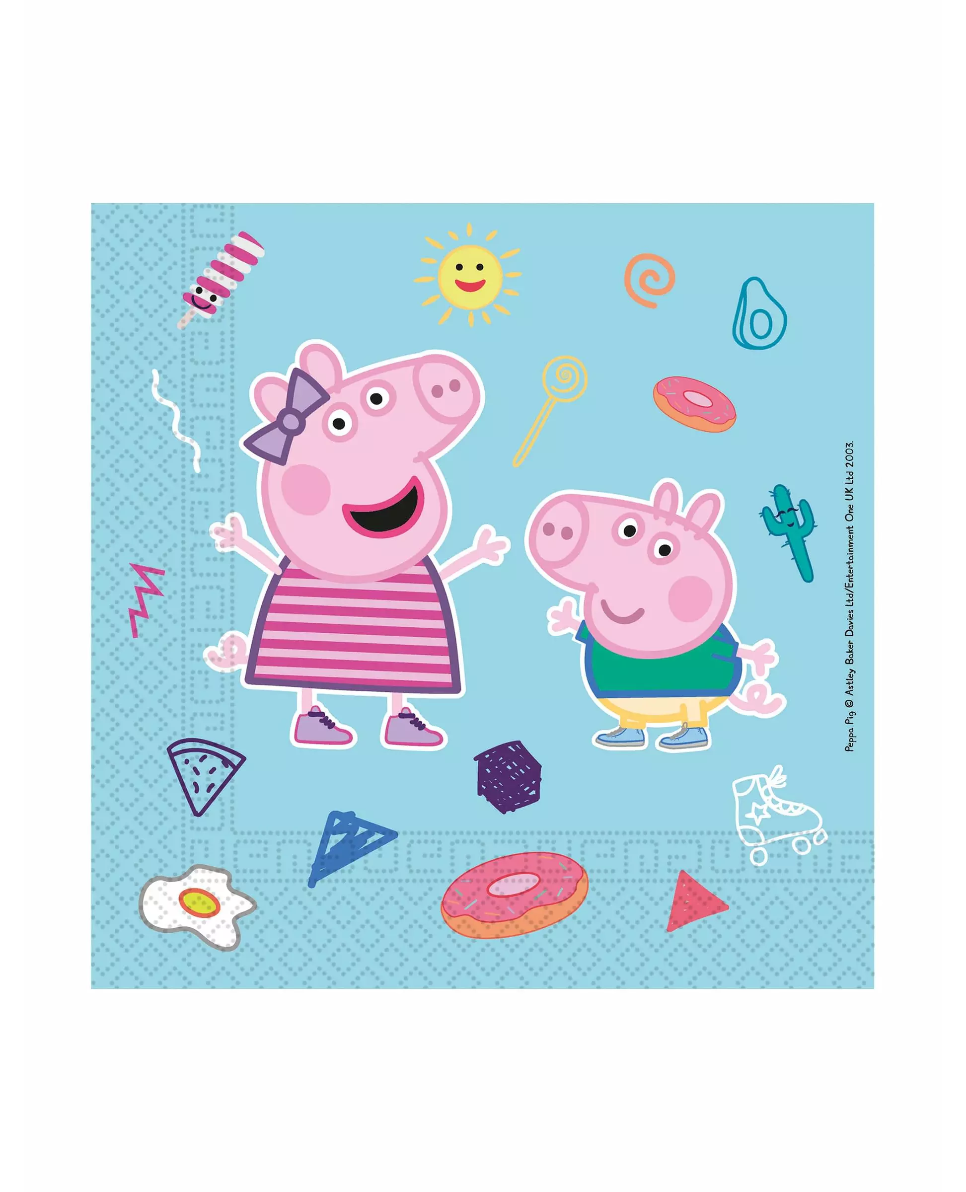 20 Peppa Pig™ komposterbare papirservietter 33 x 33 cm Pynt bordet ditt i detalj med disse Peppa Pig™-serviettene. Disse 20 komposterbare papirserviettene er offisielt lisensiert av Peppa Pig™.