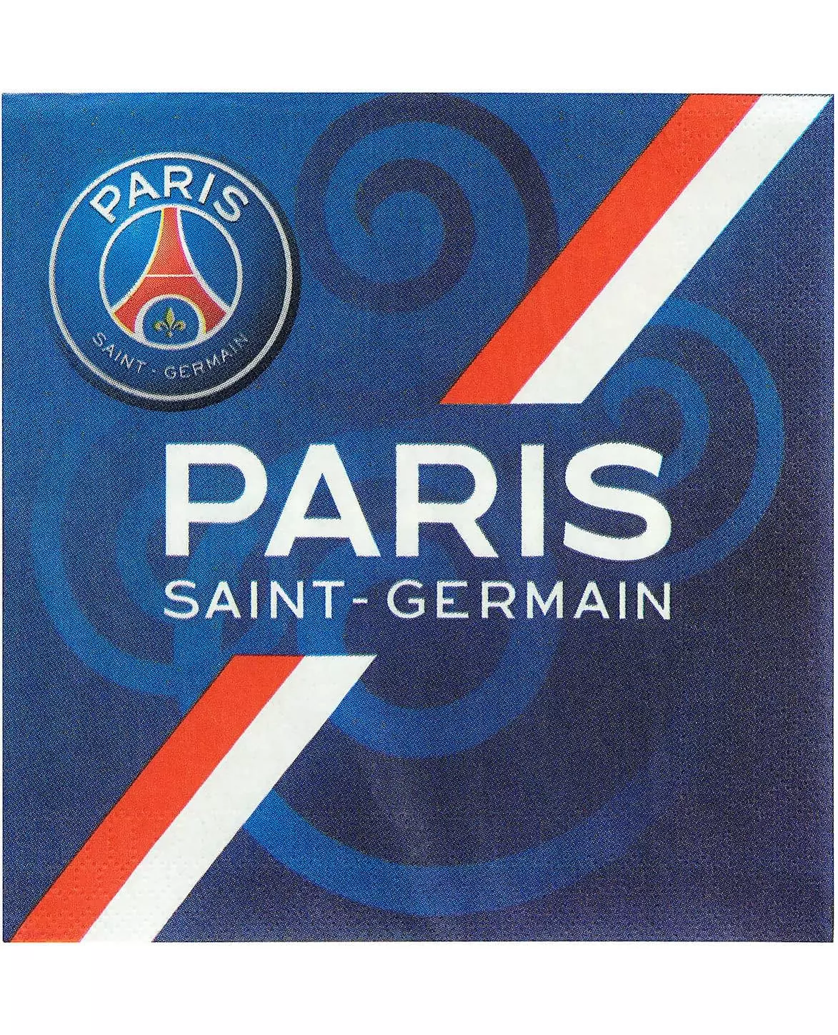 En bursdag i Paris' farger! Dette settet med 20 papirservietter hyller PSG™-fotballaget og er offisielt lisensiert. De måler omtrent 16,5 x 16,5 cm. Disse supporterserviettene vil være perfekte for en bursdagsfest med PSG™-tema! Inkludert tilbehør: 20 servietter Materiale: Papir