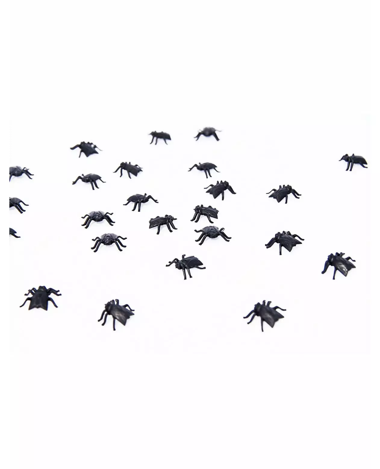 En invasjon av fluer Dette settet består av 24 svarte plastfluer. Fluene måler omtrent 2 x 2 cm. De vil være perfekte som borddekorasjon under Halloween-måltidet eller til fester med skrekktema. Inkludert tilbehør: 18 fluer