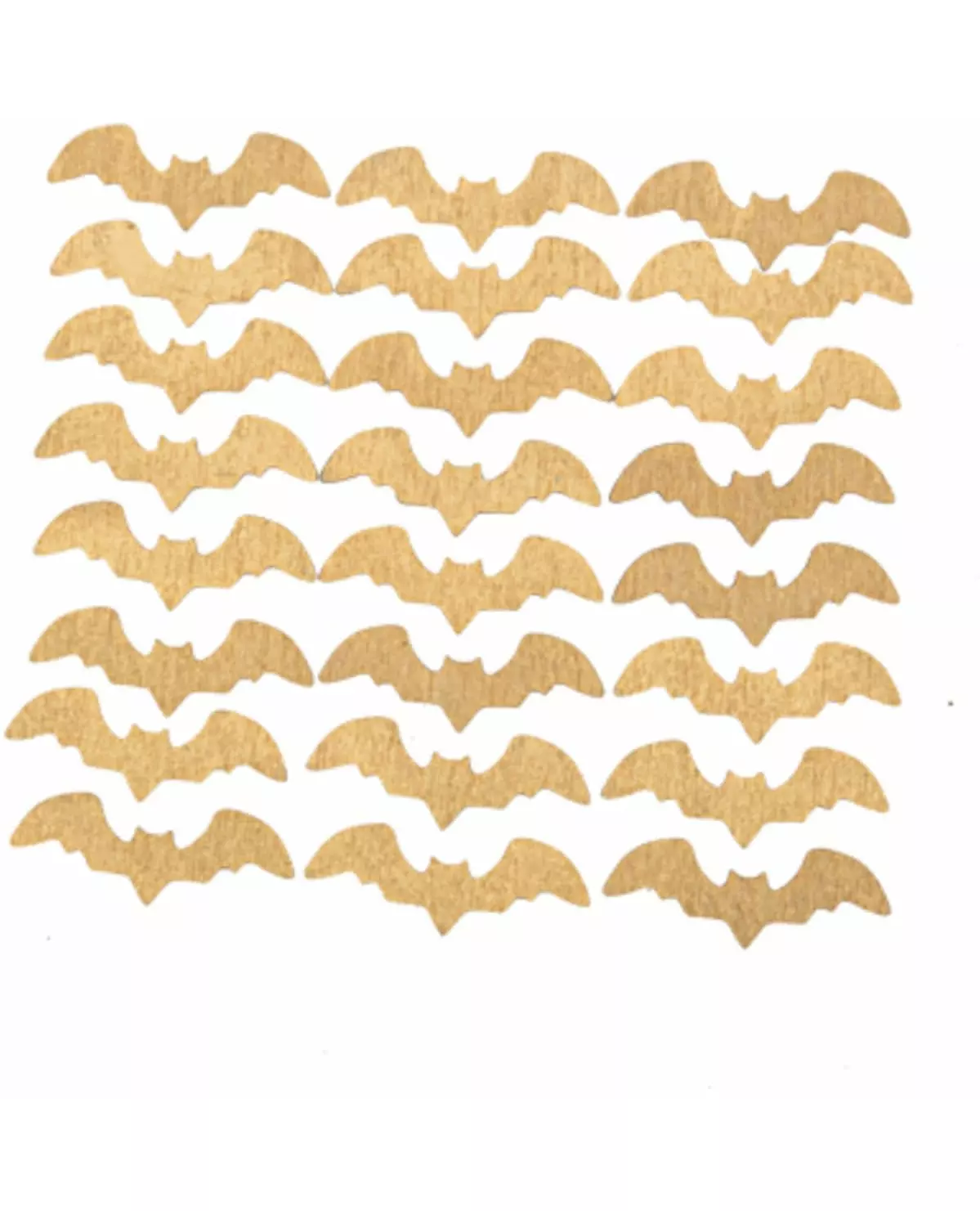 Halloween-flaggermus! Dette settet består av 24 konfetti som måler omtrent 4 cm. De er laget av tre og forestiller gylne flaggermus. Elegant vil være dagens orden på Halloween-festen din med disse flaggermuskonfettiene! Inkludert tilbehør: 24 konfetti Materiale: Tre