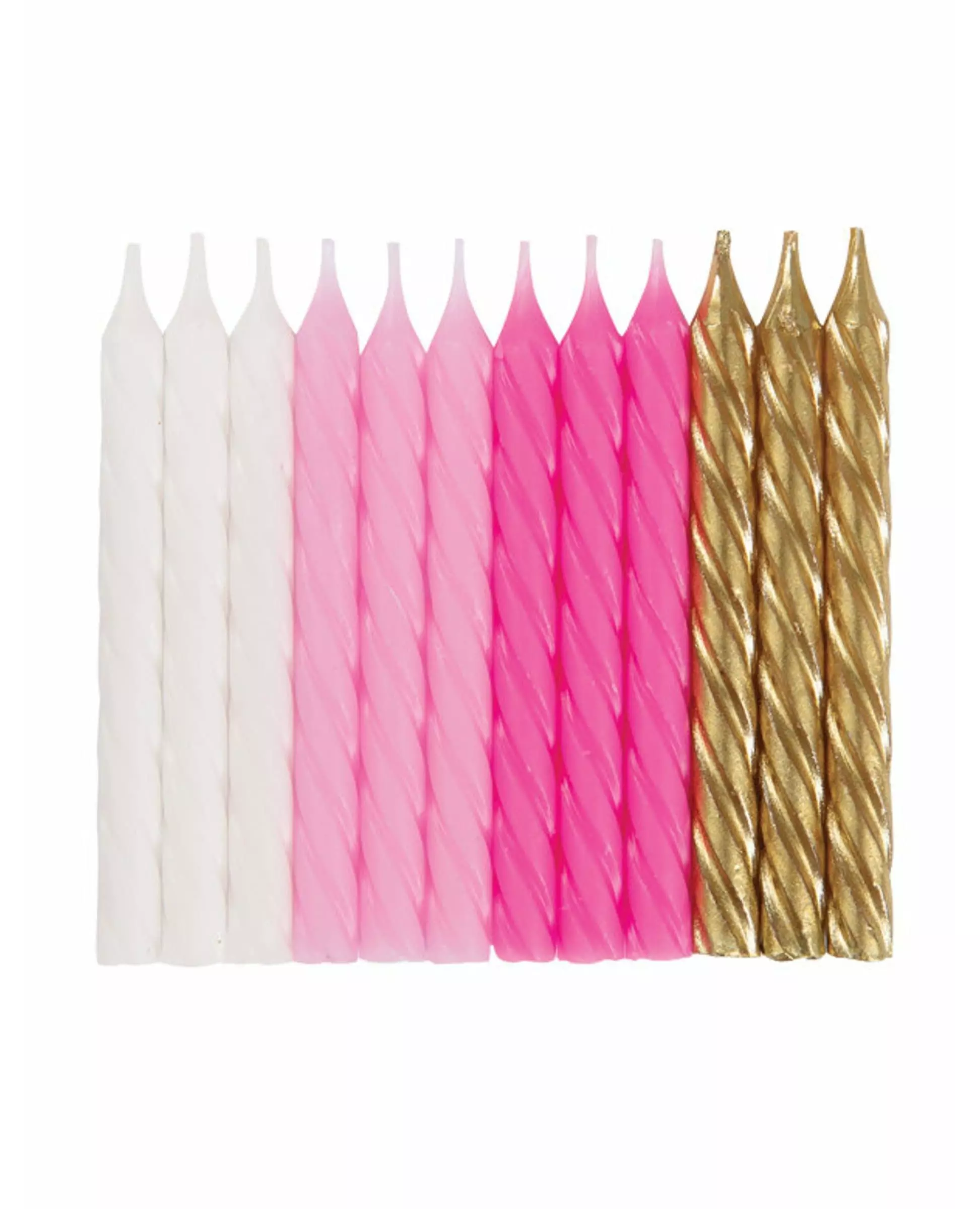 24 rosa, hvite og gullfargede spiralbursdagslys 7 cm
