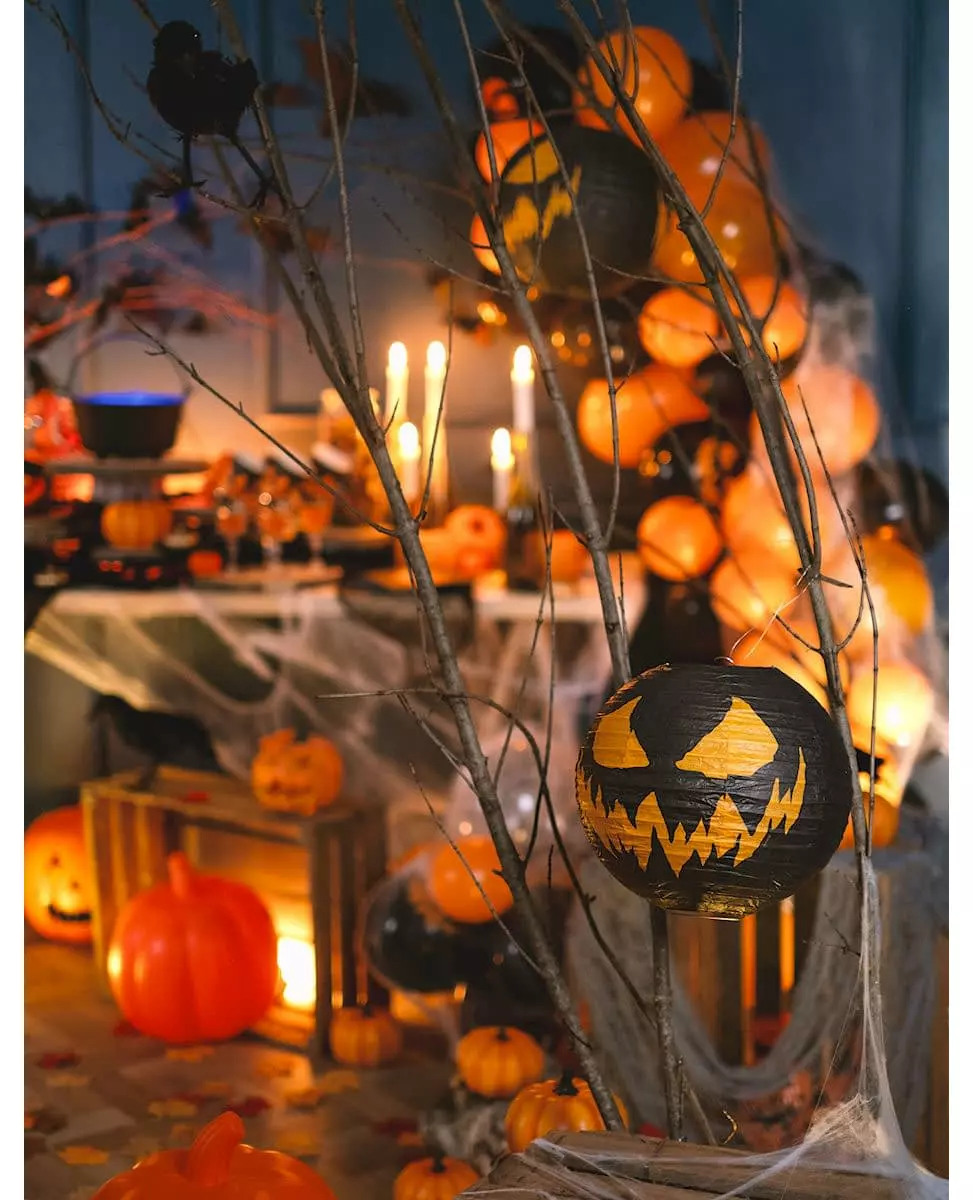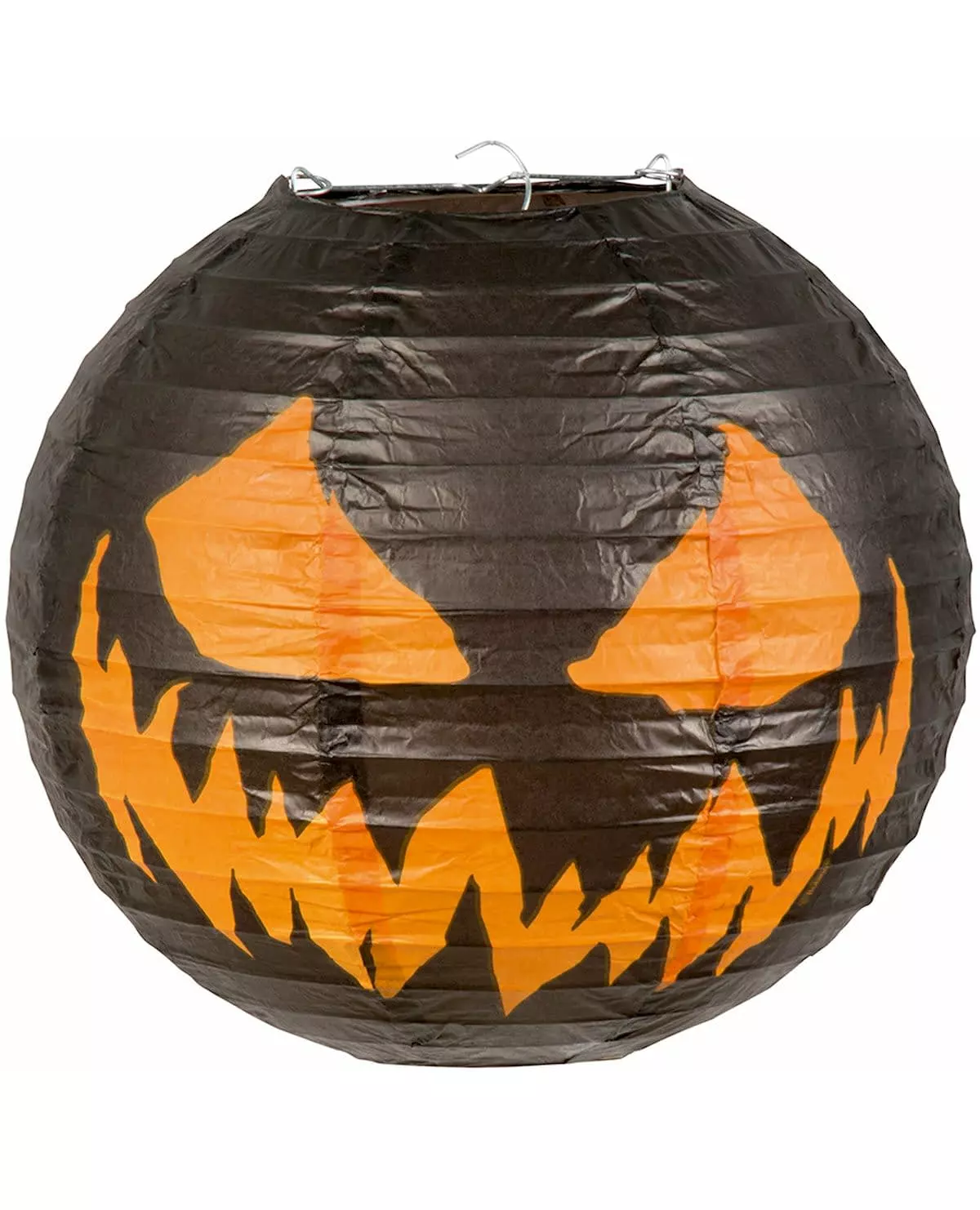 For et helvetes lys! Denne skremmende gresskarlykten er laget av papir. Den måler omtrent 25 cm. Papirlykten er svart. Den er dekorert med øynene og munnen til et skremmende svart gresskar. Takket være rammen og kroken kan du enkelt henge den opp. Skap en skremmende stemning til Halloween med denne gresskarlykten. Inkludert tilbehør: 1 papirlykt Materiale: Papir