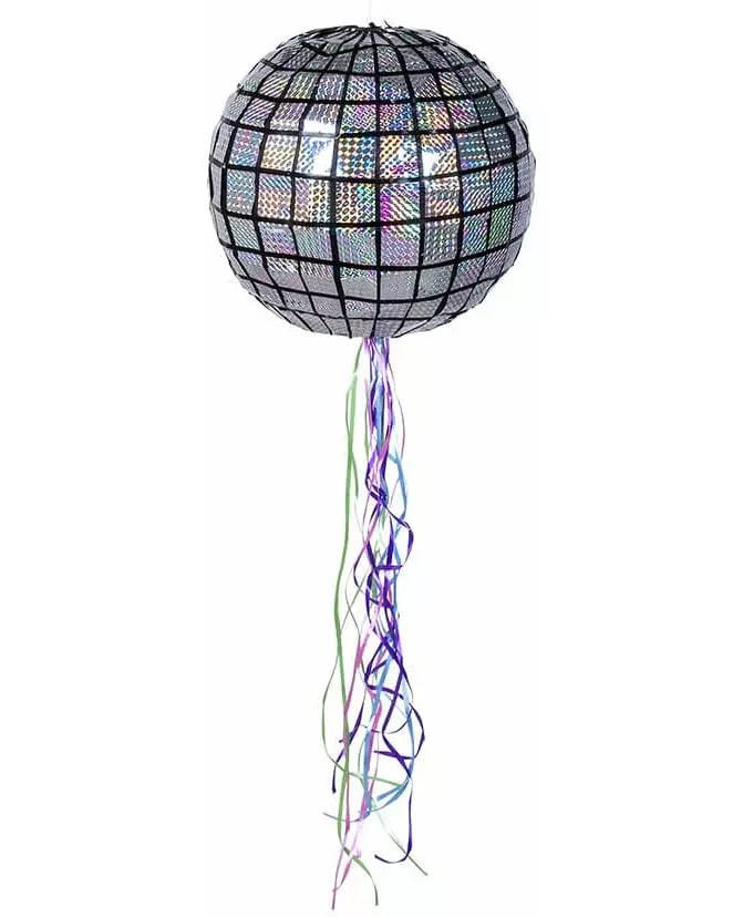 Hamstre disko-overraskelser! Denne disko-kuleformede piñataen er en lett knuselig gjenstand. Den måler omtrent 30 cm i høyden. Den kan fylles med hva du vil (små leker, godteri, konfetti osv.) takket være en liten åpning på 5 cm i diameter. Målet er at en gruppe barn, med bind for øynene eller ikke, skal bevæpne seg med en pinne og prøve å knuse piñataen for å hente godteriet eller de små gavene som er gjemt inni. Ideell for å underholde barna dine på bursdagsfester eller andre arrangementer. Inkludert tilbehør: 1 piñata
