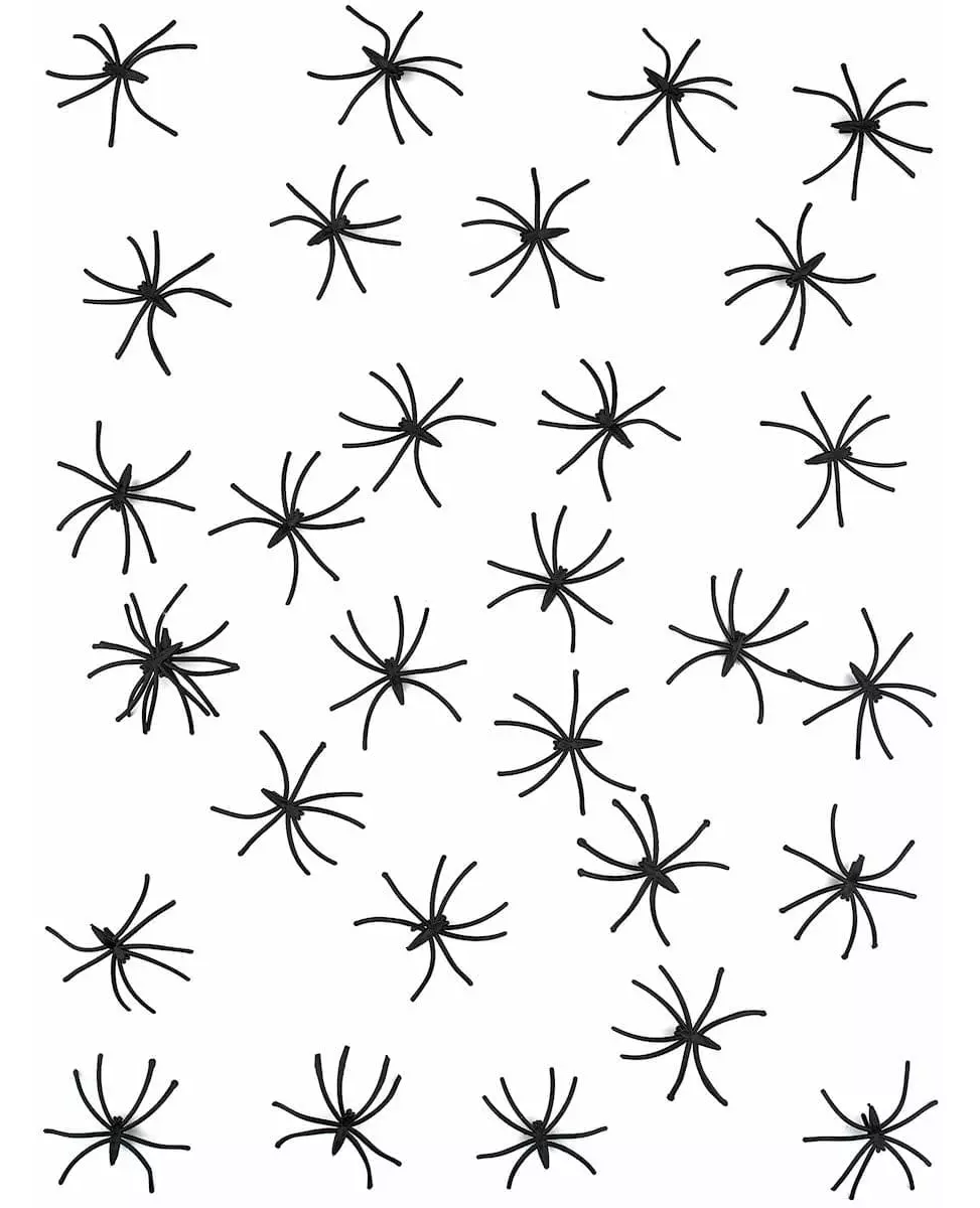 Søtt små edderkopper! Disse dekorative edderkoppene er laget av svart plast. De måler ca. 2,5 cm i vingespenn og vil være ideelle, på grunn av sin lille størrelse, for å skremme vennene dine når de er plassert på bordet på Halloween-festen. Inkludert tilbehør: 30 mini-edderkopper Materiale: Plast