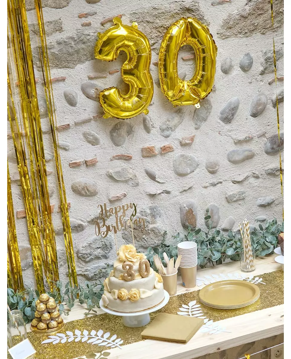 En trendy og elegant romdekorasjon! Denne gullfargede tallballongen i aluminium måler omtrent 33 cm. Du kan velge en tallballong mellom 0 og 9. Du kan til og med kombinere den med andre tallballonger for å lage datoer. Den blåses opp med luft (ikke kompatibel med heliumoppblåsing) gjennom en ventil som er beregnet for dette formålet, og ved hjelp av et sugerør (inkludert) eller en pumpe (ikke inkludert). Til slutt kan du henge den opp ved hjelp av maljene på denne ballongen. Med denne gullfargede tallballongen får du en lys og elegant romdekorasjon til en bursdag eller nyttårsaften. Inkludert tilbehør: 1 ballong Materiale: Aluminium
