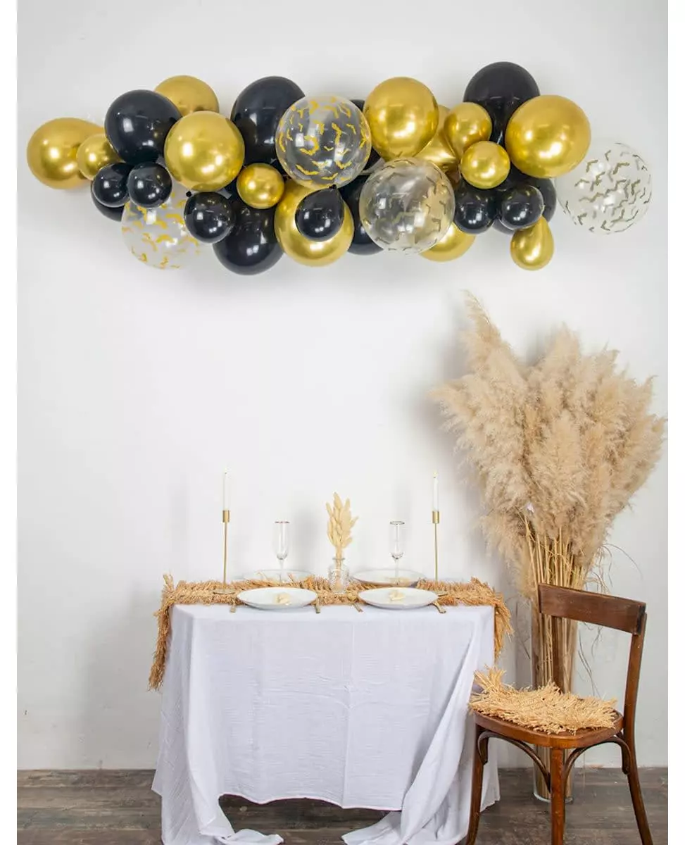 34 Halloween-ballongbuesett svart, gull og klar med flaggermus