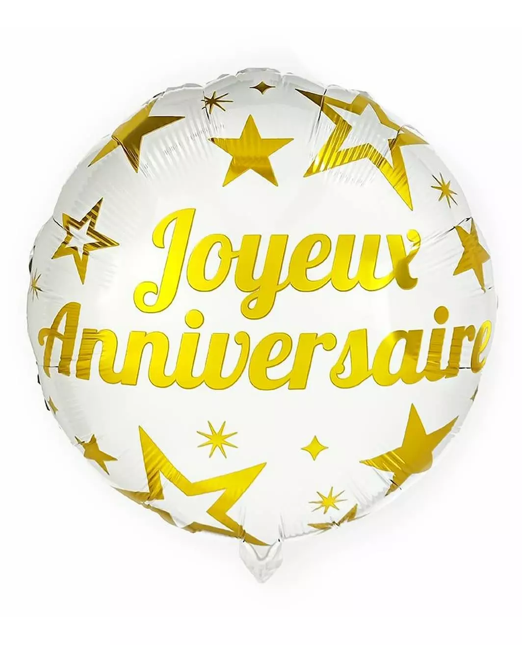 Gratulerer med dagen! Denne bursdagsballongen er laget av aluminium og er omtrent 35 cm i diameter. Den er svart med gullstjernemønstre og har også ordene «Gratulerer med dagen» skrevet i gull. Du kan blåse den opp med luft eller helium. Den vil være ideell for en festlig dekorasjon på en bursdagsfest! Inkludert tilbehør: Ballongmateriale: Aluminium