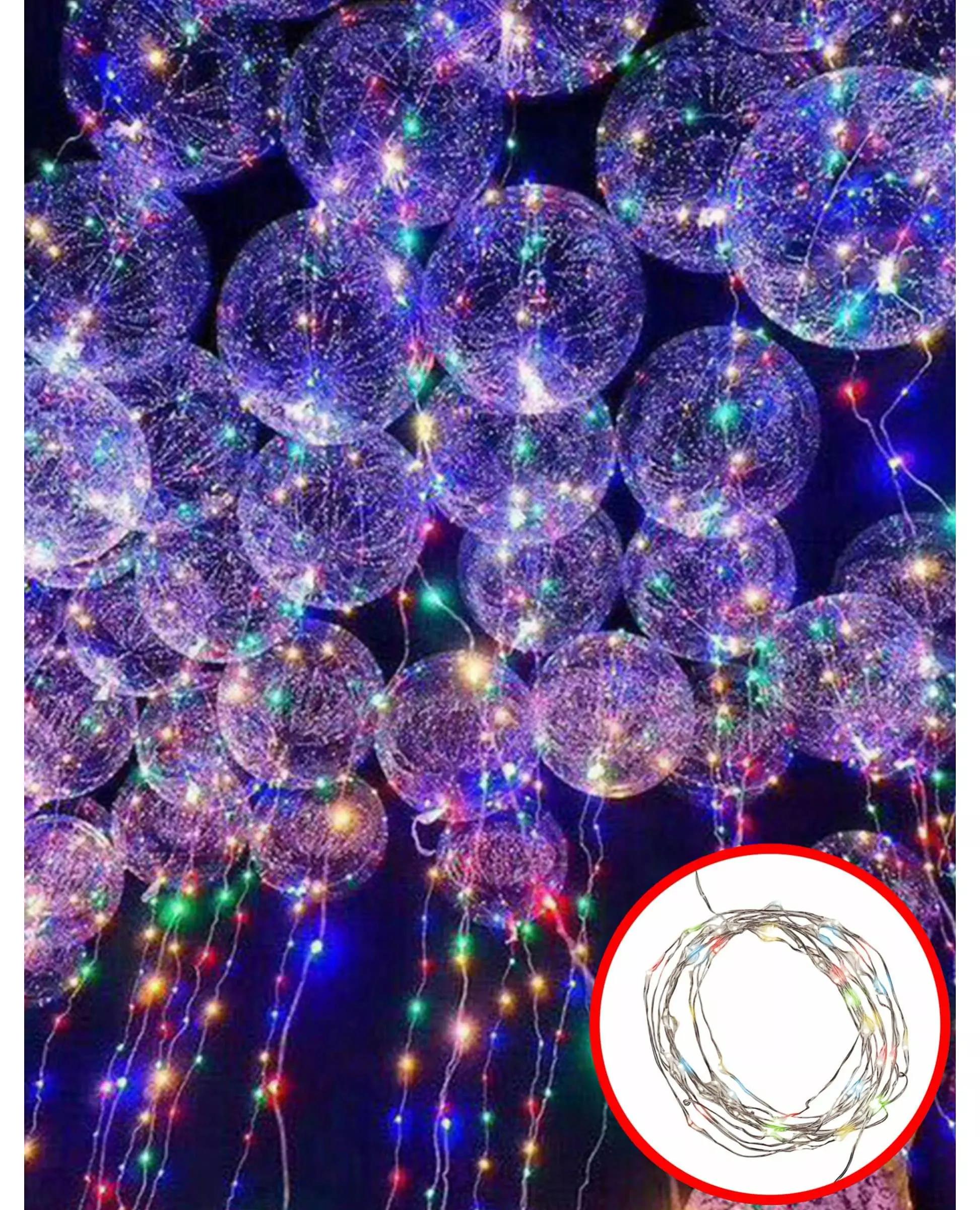Litt farge! Dette settet inneholder en LED-girlander. Denne girlanderen måler omtrent 3 meter lang og lyser i alle farger. Den kan brukes som en girlander eller surres rundt ballongene dine for å dekorere dem. For å slå den på, sett inn 3 AA-batterier (ikke inkludert). Den vil være ideell for å legge til et snev av lys og fullføre romdekorasjonen din til en bursdag eller et bryllup!. Inkludert tilbehør: 1 lysgirlander
