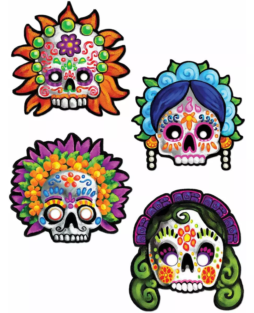 4 dekorative masker De dødes dag 30 cm