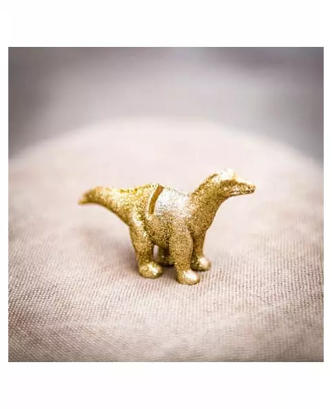 Plasser glitrende dinosaurer på gjestene dine! Disse bordkortene i harpiks selges i sett på 4. De måler omtrent 9,5 x 5 cm og er formet som en dinosaur med gullglitter. De vil være perfekte til å dekorere bursdagsbordet ditt for dinosaurer! Inkludert tilbehør: 4 bordkort Materiale: Harpiks