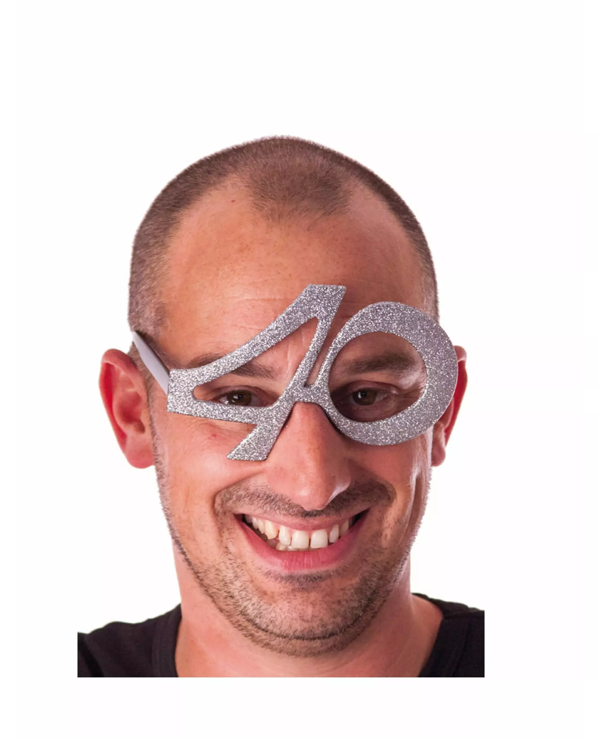 Glitter Bursdagsbriller til 40-årsdagen. Disse plastbrillene representerer tallet 40, som hentyder til alderen 40.