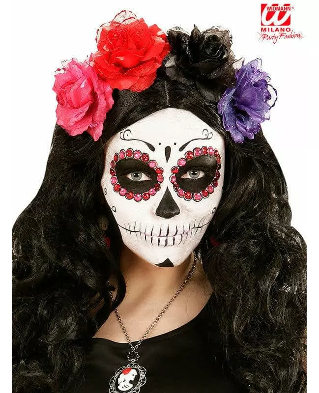 Gi sminken din volum Dette settet består av 40 plaststrassteiner. Disse selvklebende strasssteinene måler omtrent 0,8 cm i diameter. 20 av disse strasssteinene er rosa, og de andre 20 er røde. Disse strasssteinene vil være perfekte for å fullføre sminken din med Dia de los Muertos-tema. «Copyright Widmann SRL» «Copyright Widmann SRL. Inkludert tilbehør: 40 strasssteiner
