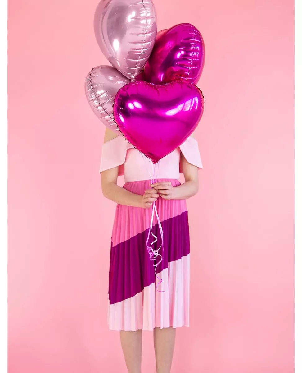 Et hjerte å ta med seg! Denne aluminiumsballongen er nesten 45 cm når den er oppblåst. Den er hjerteformet med en vakker lyserosa farge med en metallisk effekt; du kan fylle den med luft eller helium hvis du vil at den skal sveve. Denne ballongen vil være perfekt til morsdagen eller for å skape en romantisk atmosfære på Valentinsdagen!. Inkludert tilbehør: 1 ballong Materiale: Aluminium